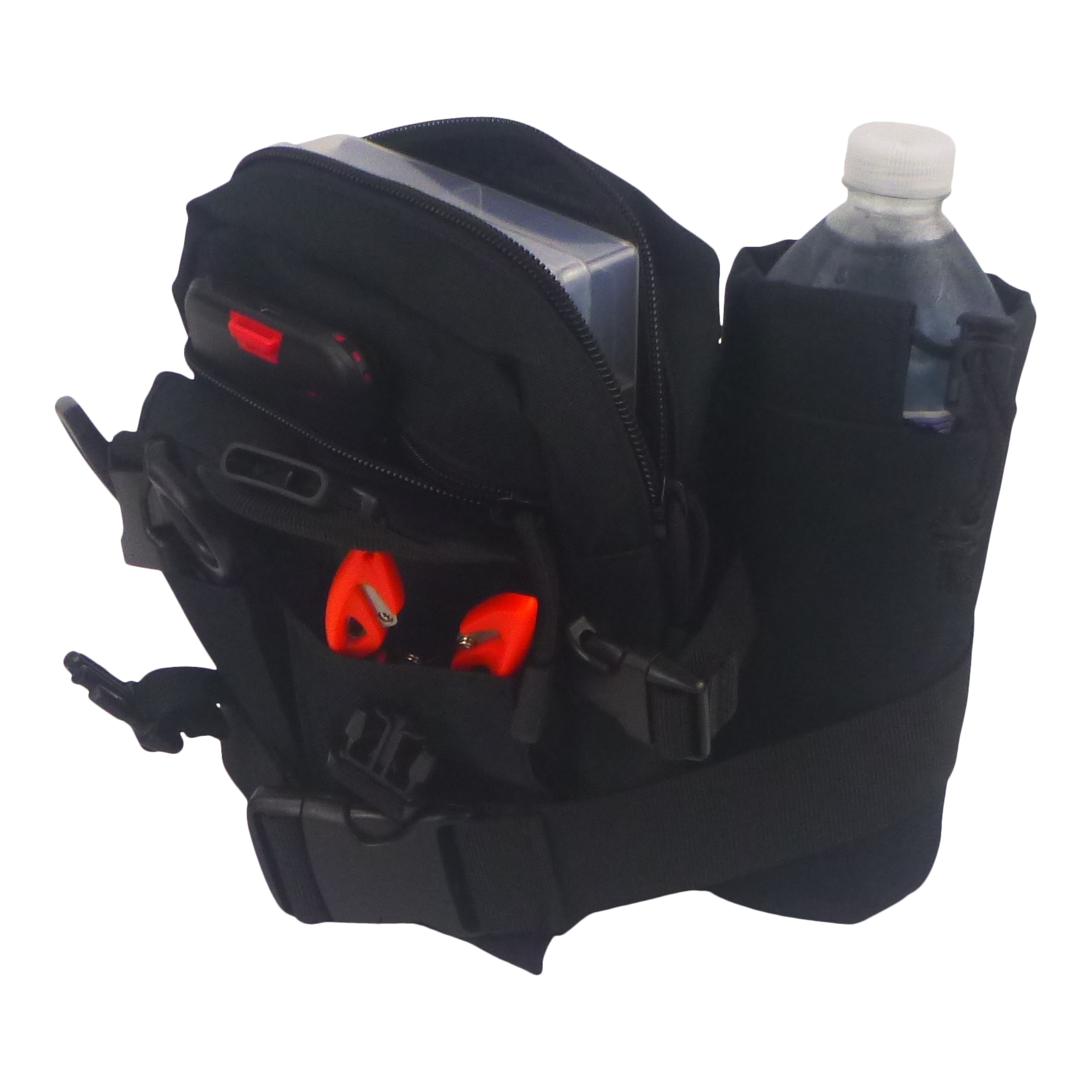 - Dedicated bottle pocket with restraining strap for hanging extra items.