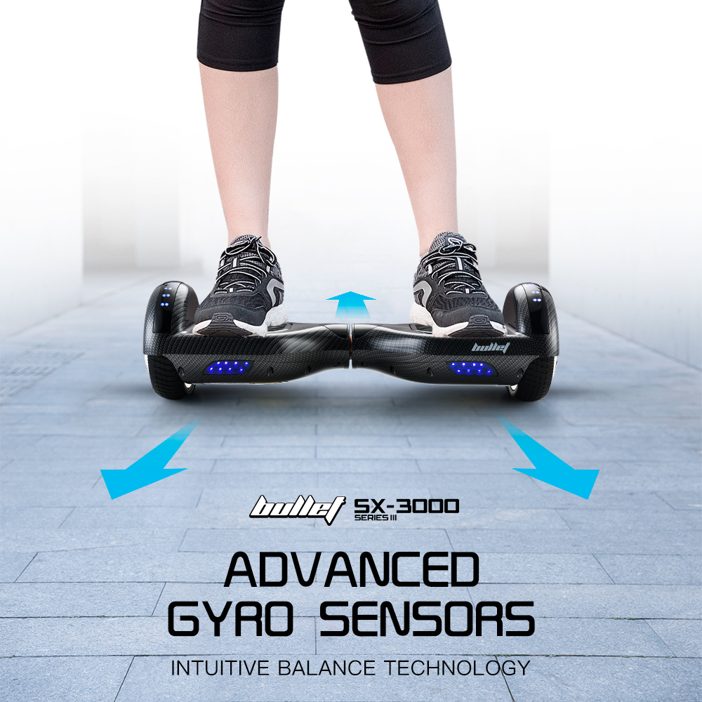The NEW Bullet SX-3000 Series III Electric Hoverboard Scooter brings a whole new concept of travel to the streets. This state-of-the-art self-balancing device reacts instinctively to your body’s shifting movements for highly responsive acceleration, turning and reversing.