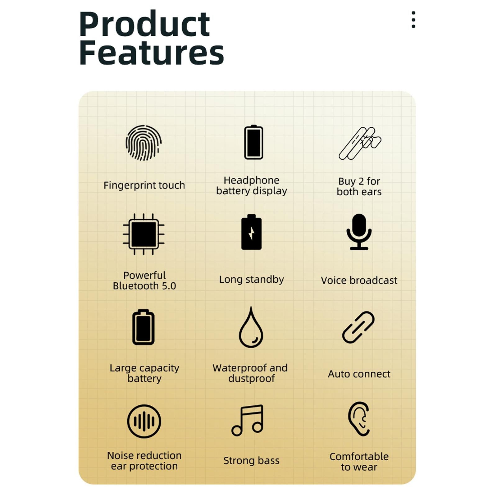 • 1 x V19S Business Style Fingerprint Touch Bluetooth 5.0 Earphone