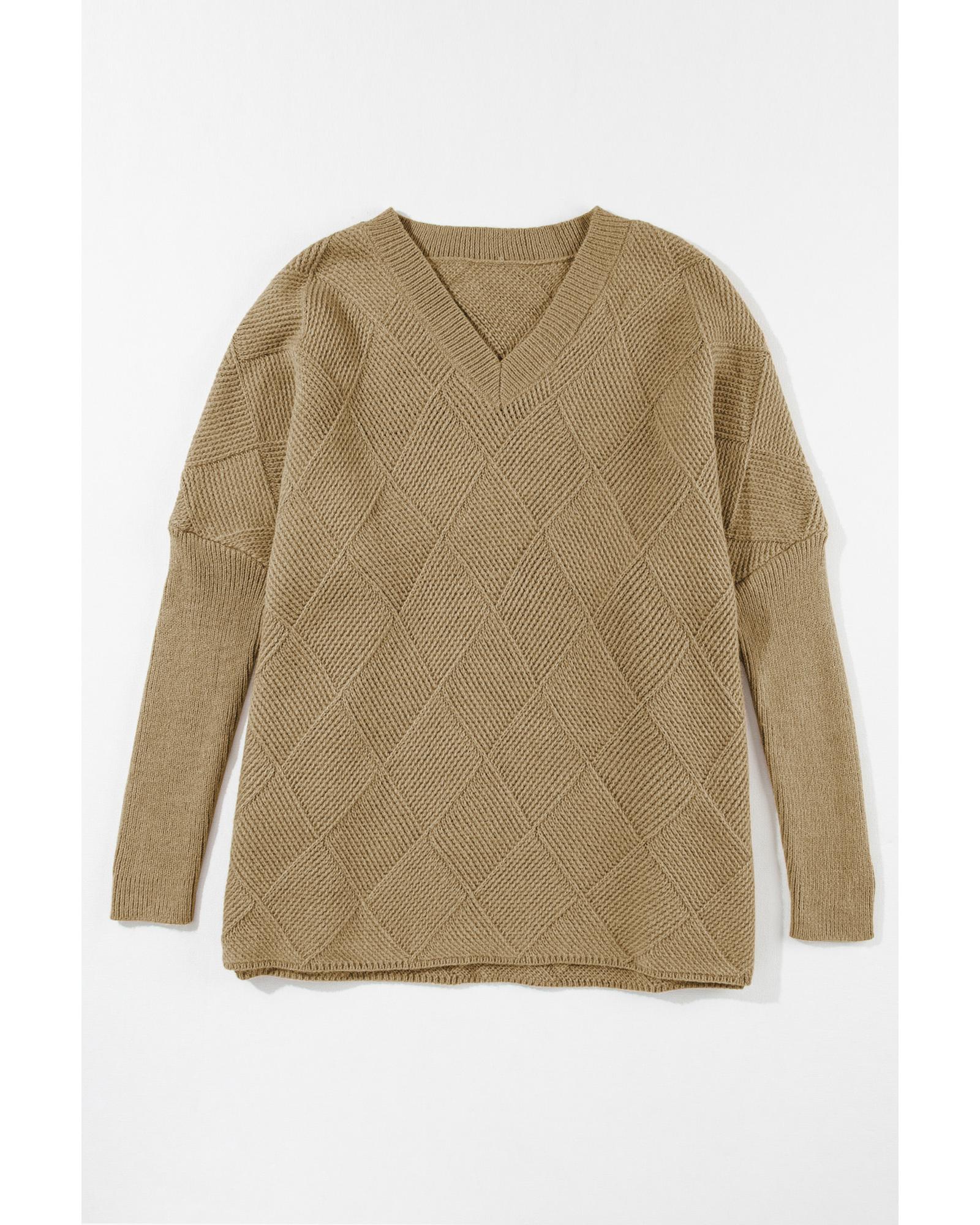 Camel Checkered Textured Batwing Sleeve Sweater – XL