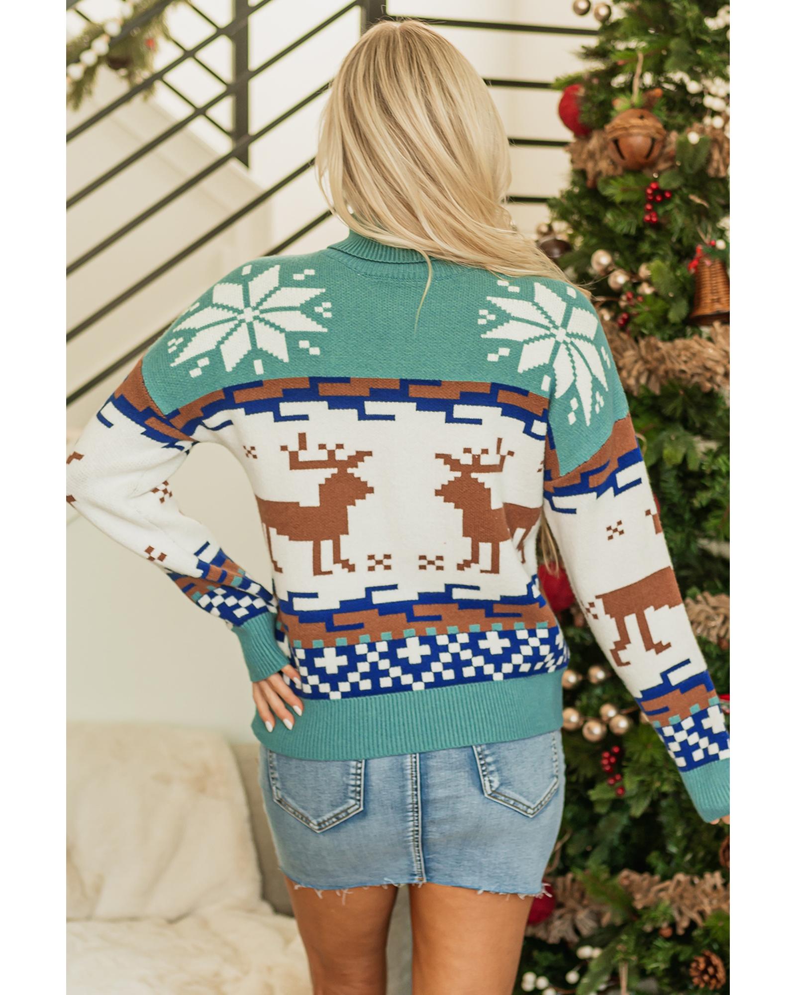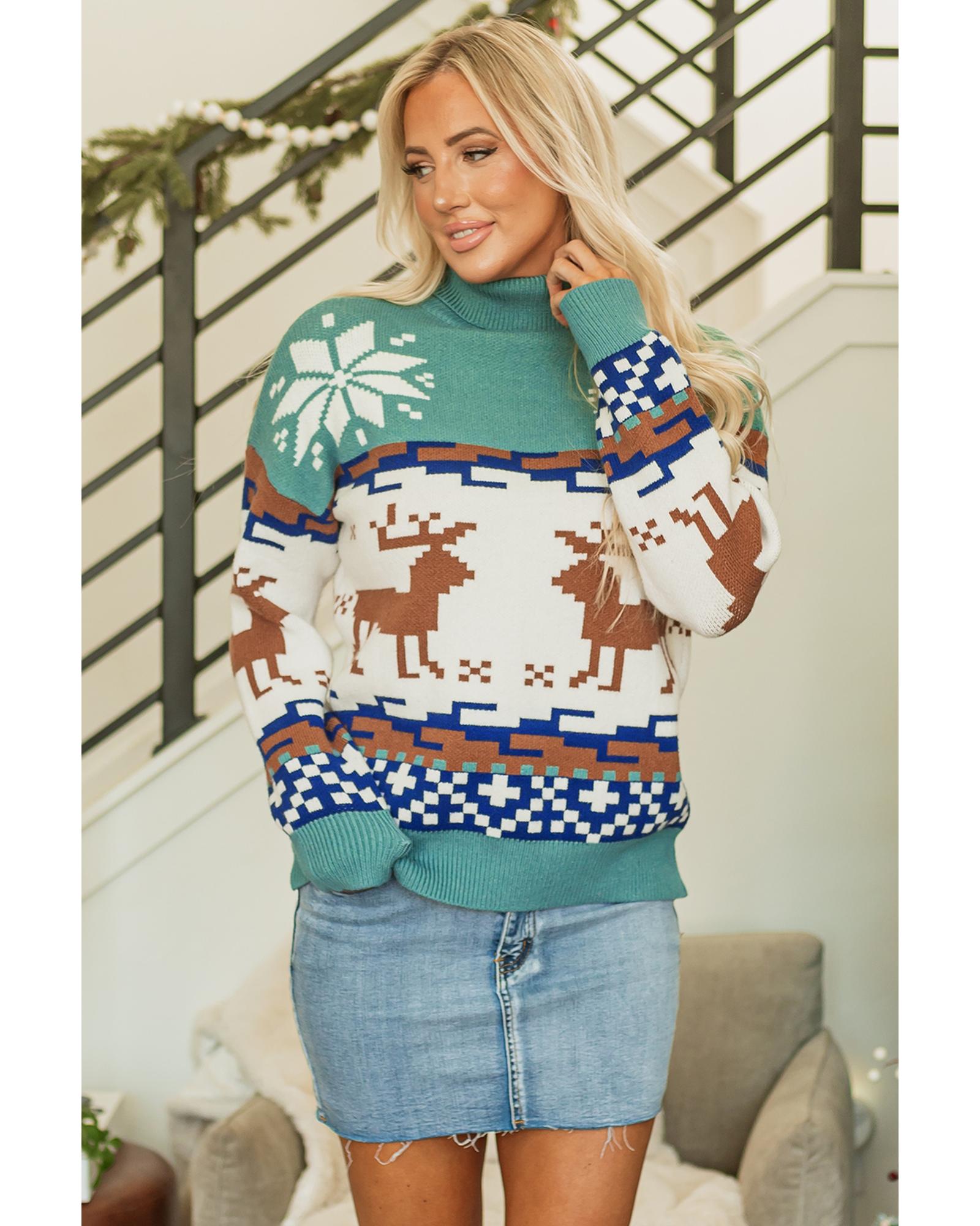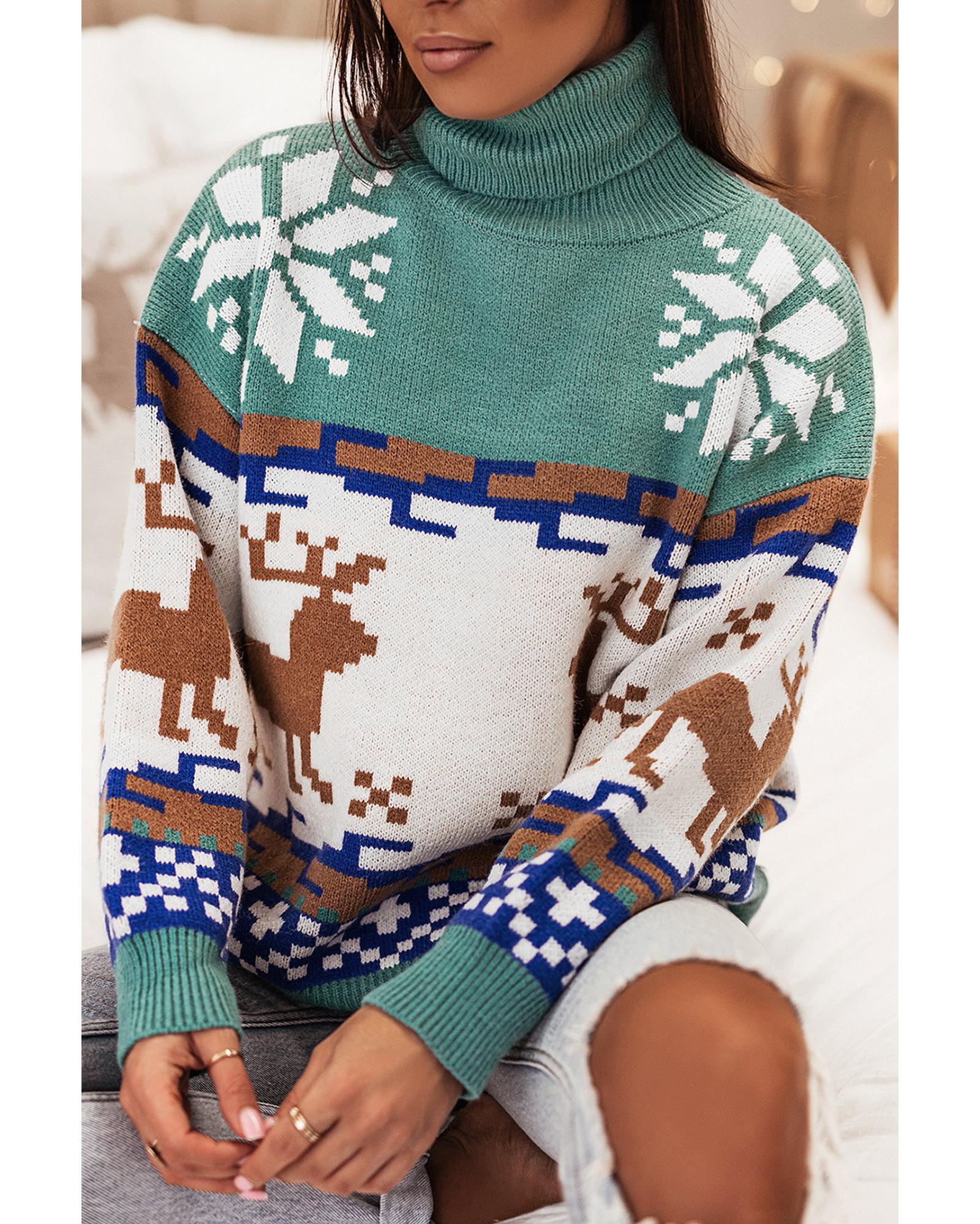 Canton Christmas Reindeer Snowflake Colorblock Turtleneck Sweater – L
