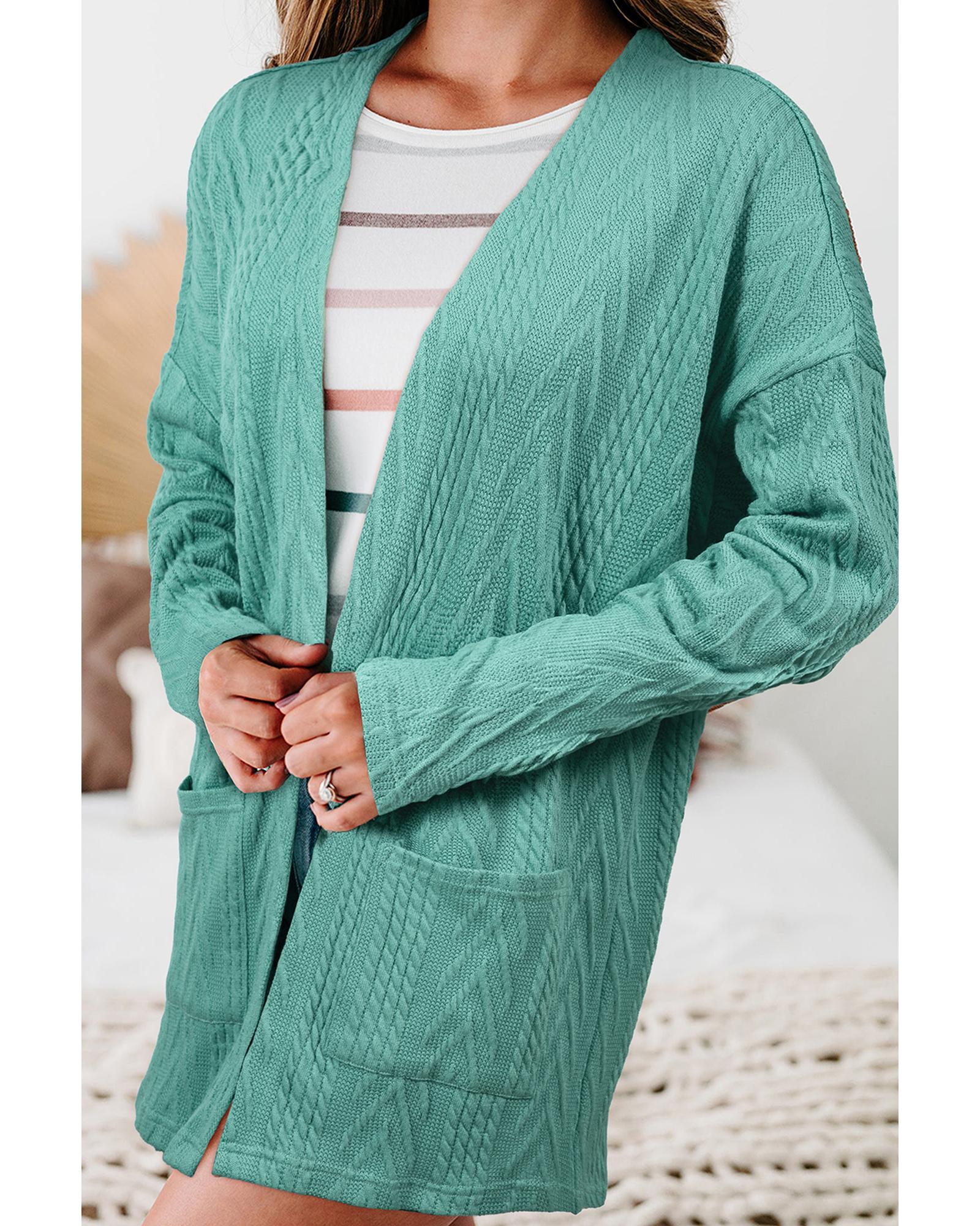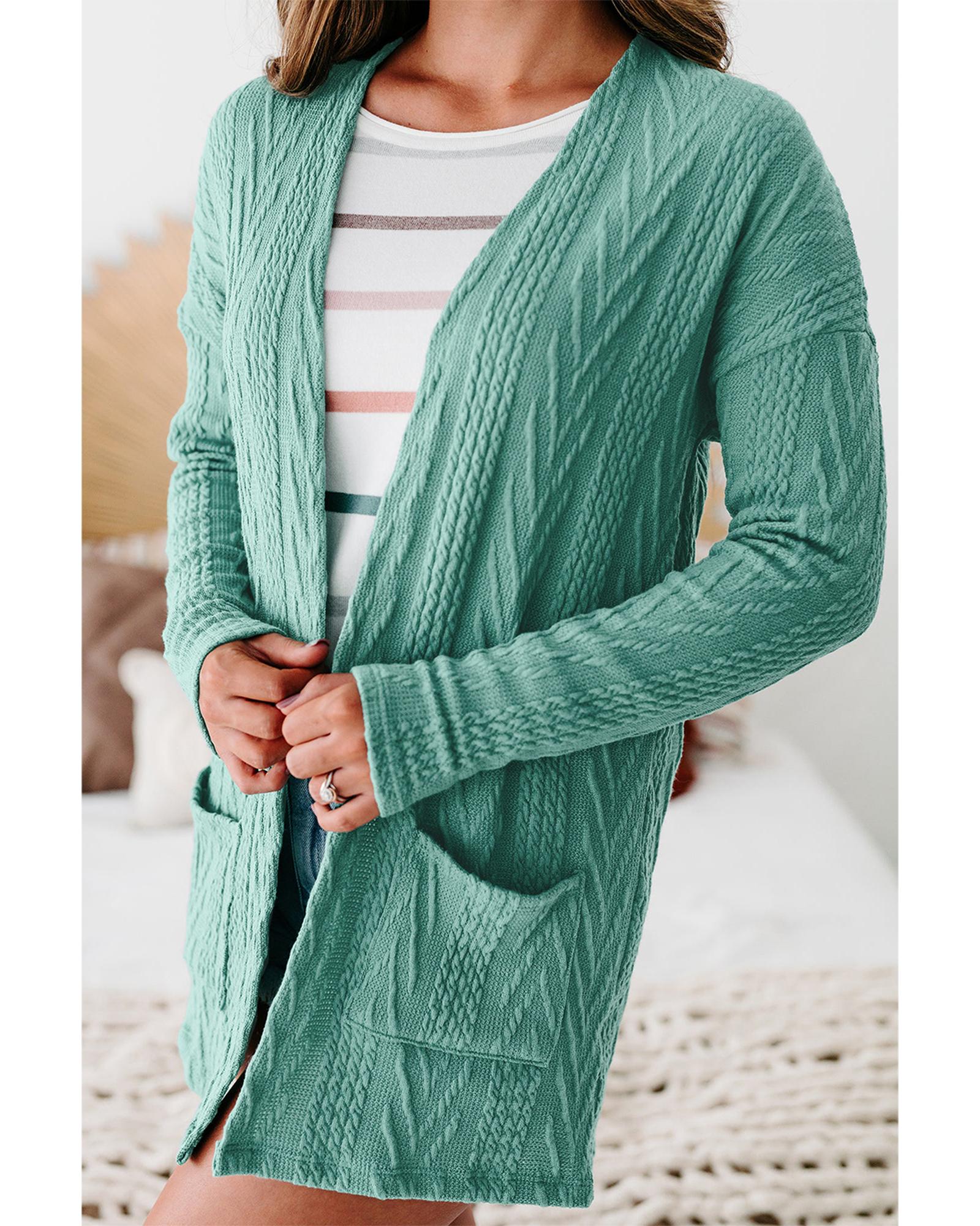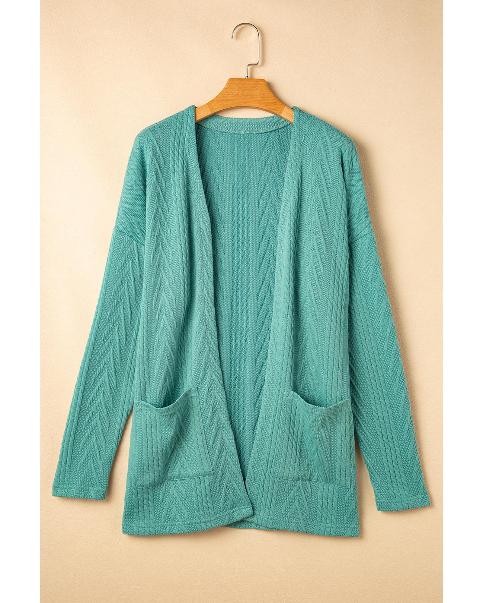 Canton Solid Textured Open Front Cardigan with Pocket – L
