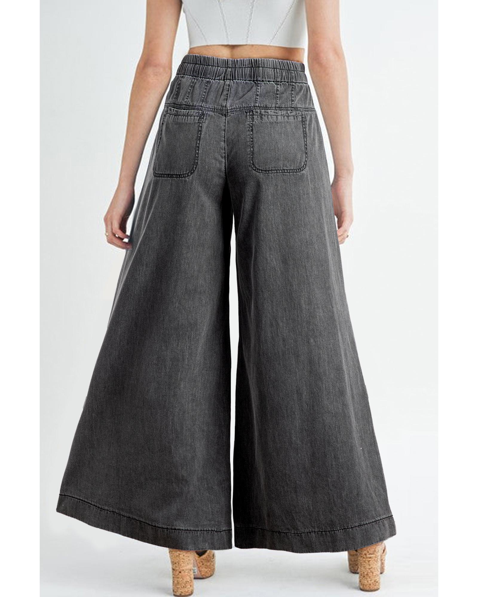 Carbon Grey Mineral Wash Button Fly Waist Wide Leg Jeans – 10 US