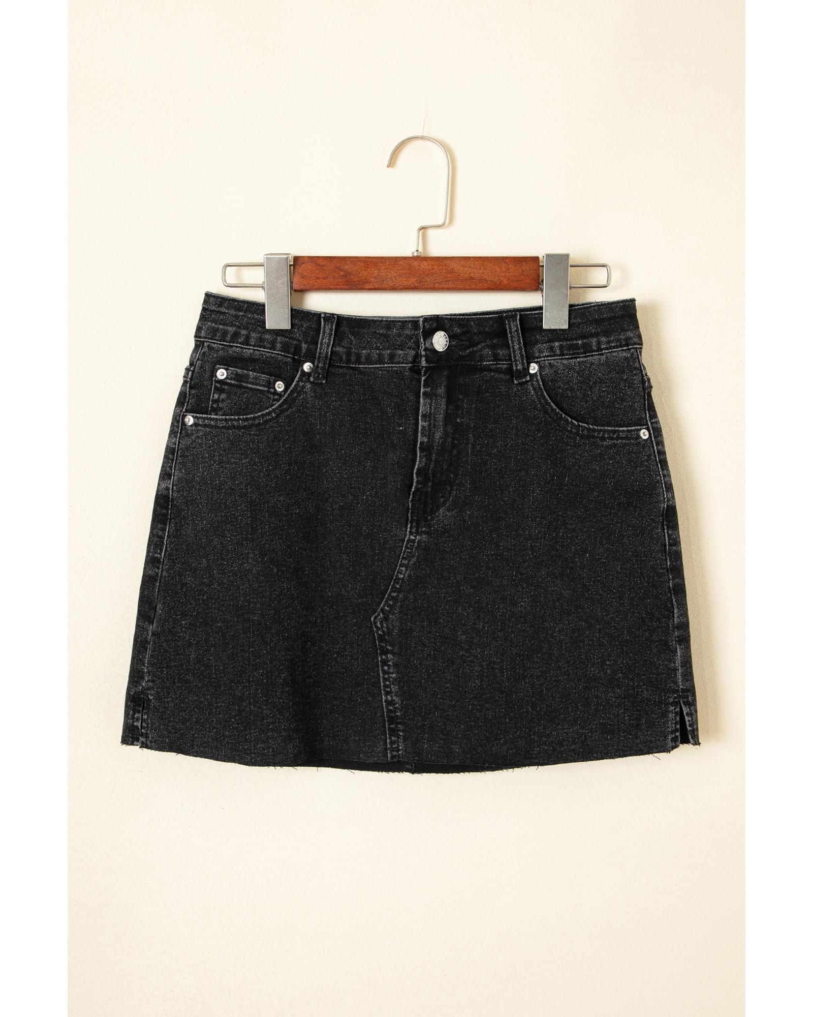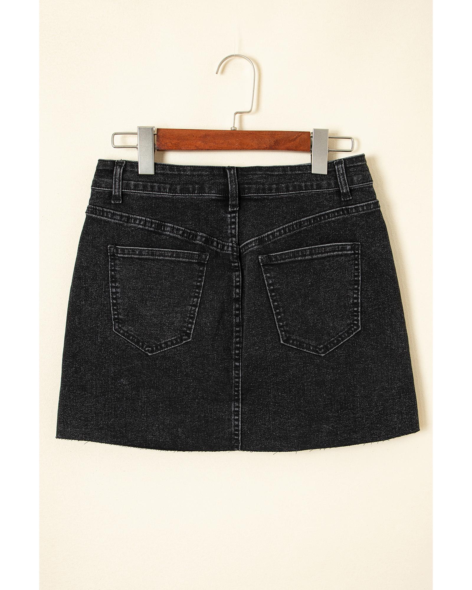 Carbon Grey Mineral Wash Ripped Raw Hem Denim Mini Skirt – 10 US