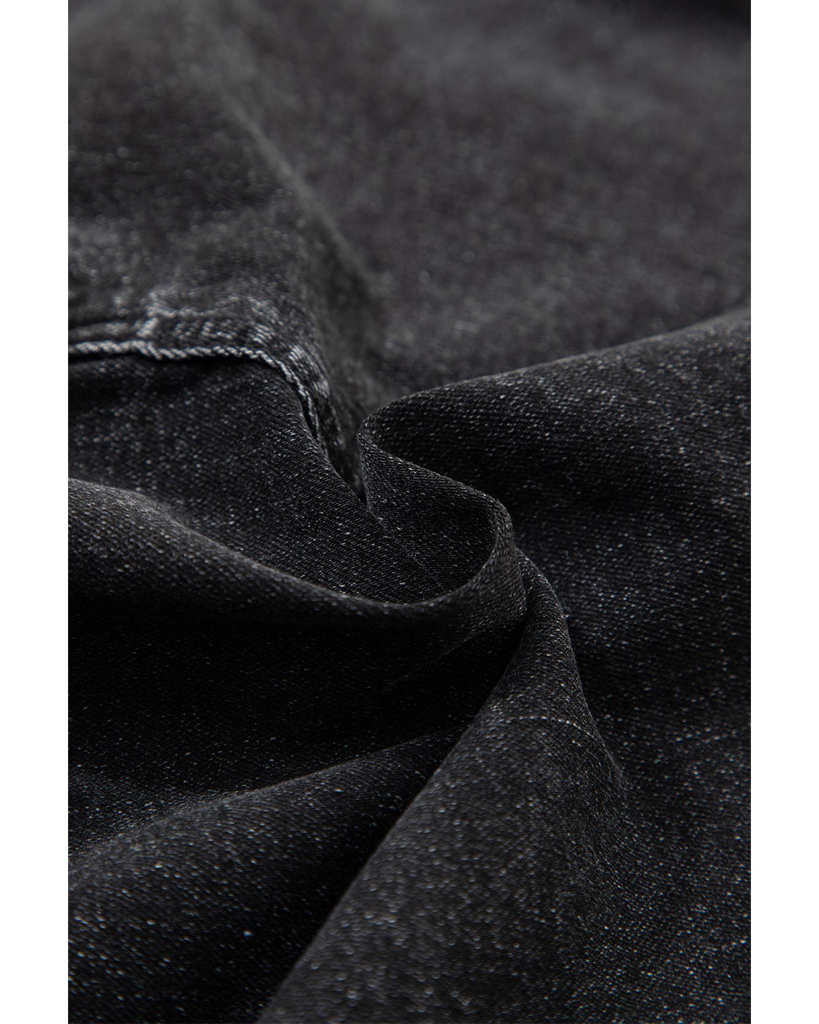 Black Side Pockets Frilled Smocked High Waist Wide Leg Jeans - XL