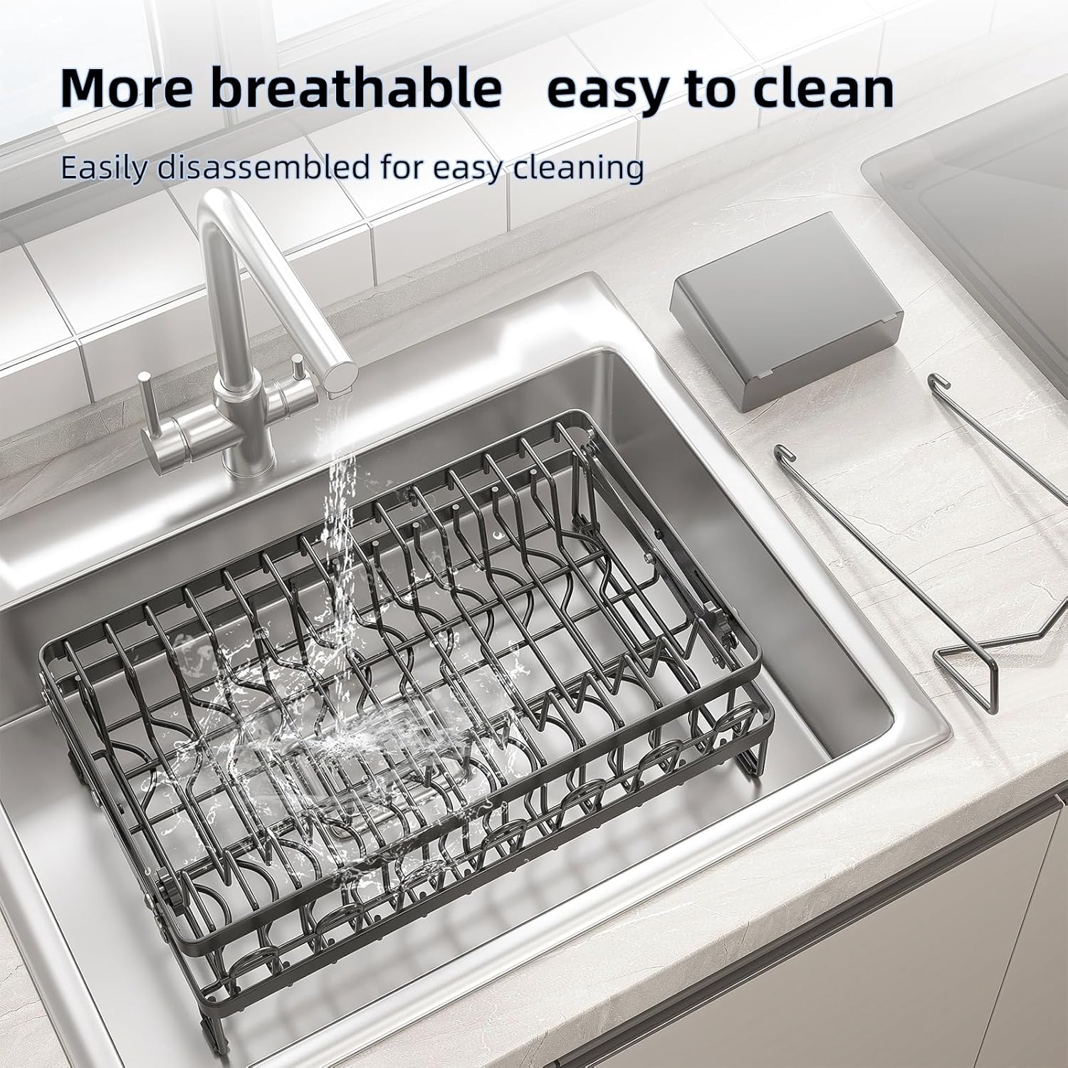 - 360° DRAINAGE SYSTEM: The pull-out tray includes a rotating spout to channel water directly into the sink, keeping your countertop dry. Say goodbye to stagnant puddles and enjoy a cleaner, more hygienic kitchen.