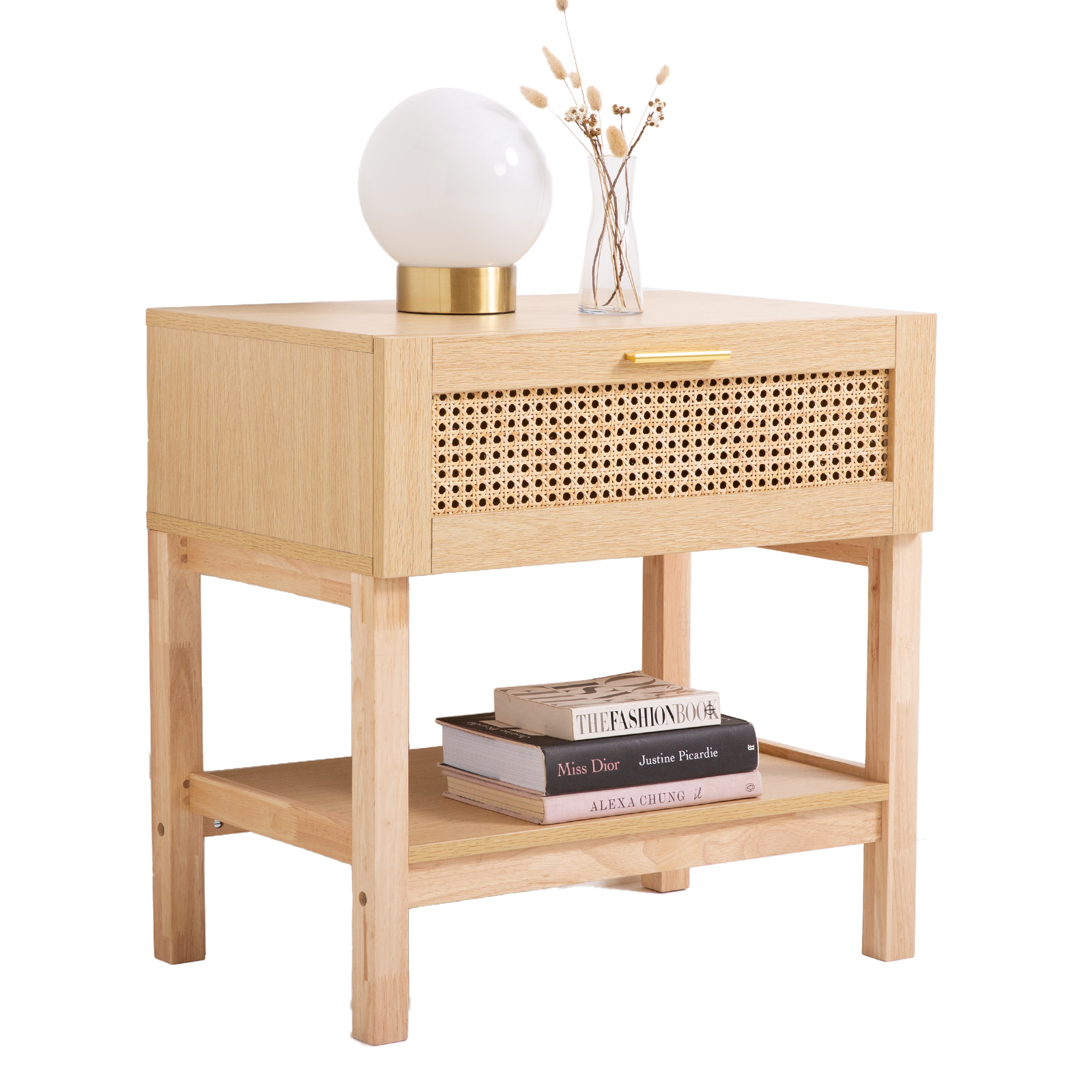 Casa Decor Santiago Rattan Bedside Table Drawers Table Nightstand Cabinet Oak