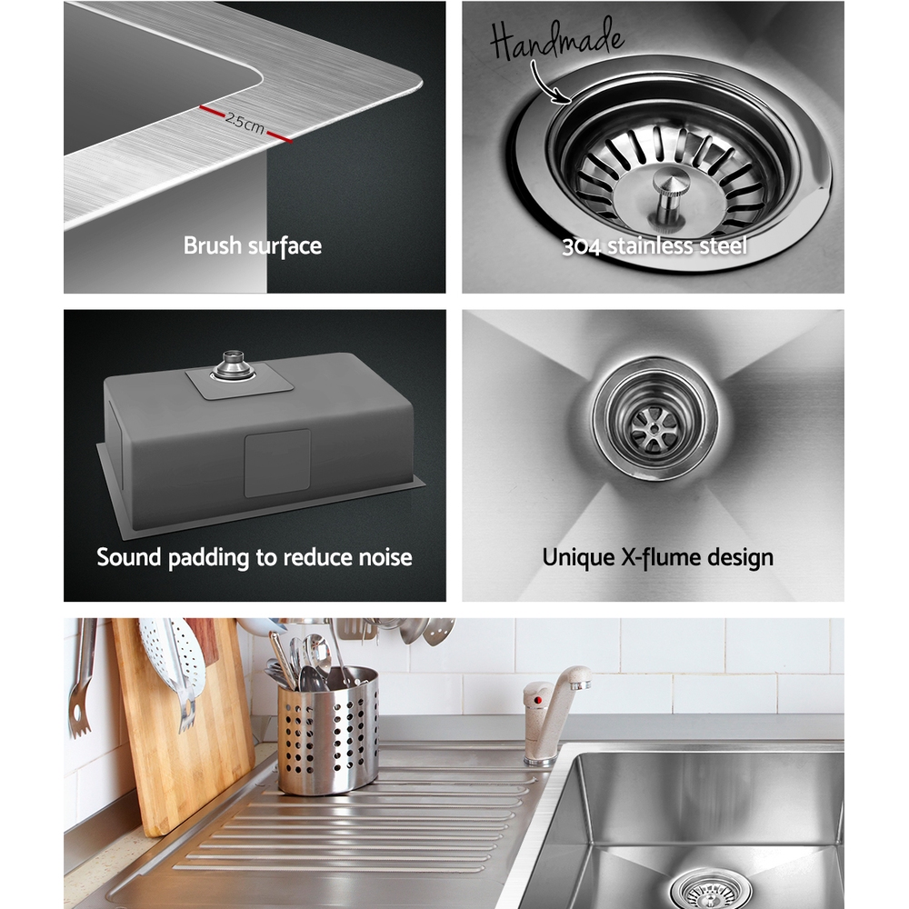 Cefito Kitchen Sink 70X45CM Stainless Steel Basin Single Bowl Silver