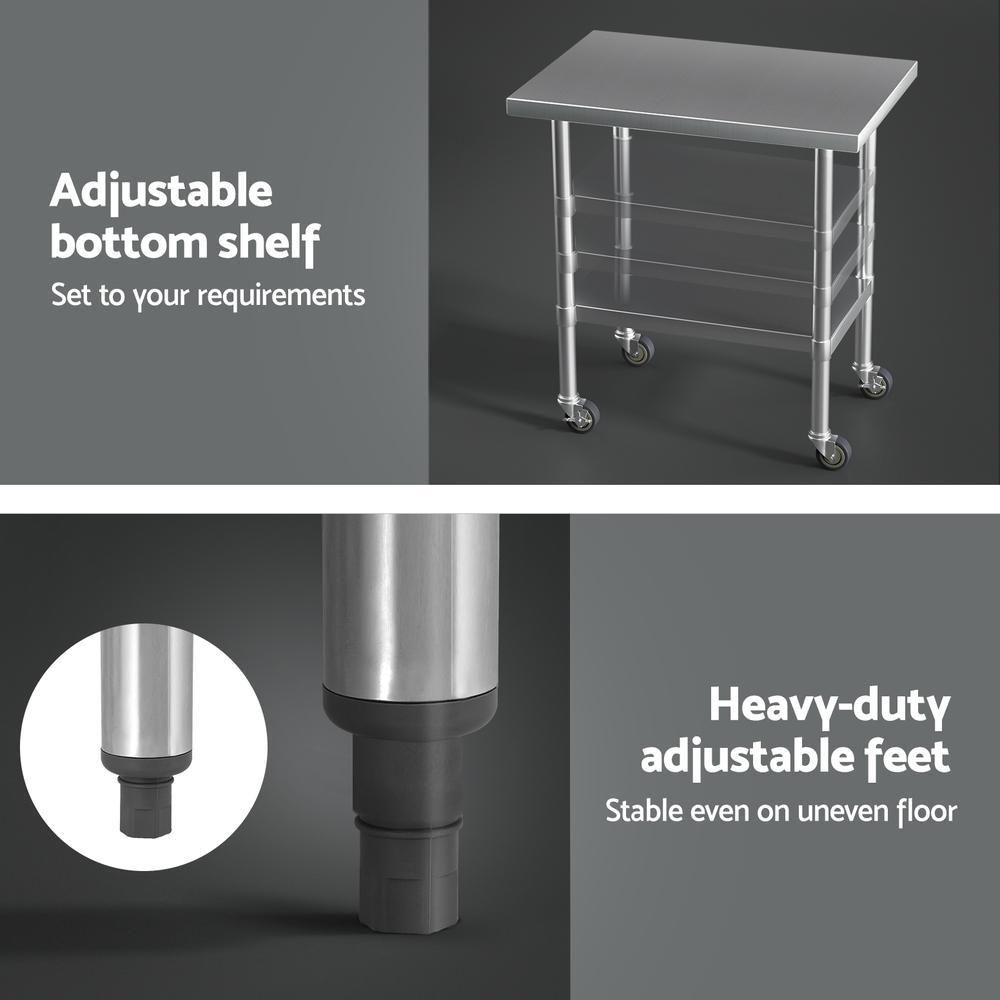 Cefito Stainless Steel Kitchen Benches Work Bench Wheels 91X61CM 430