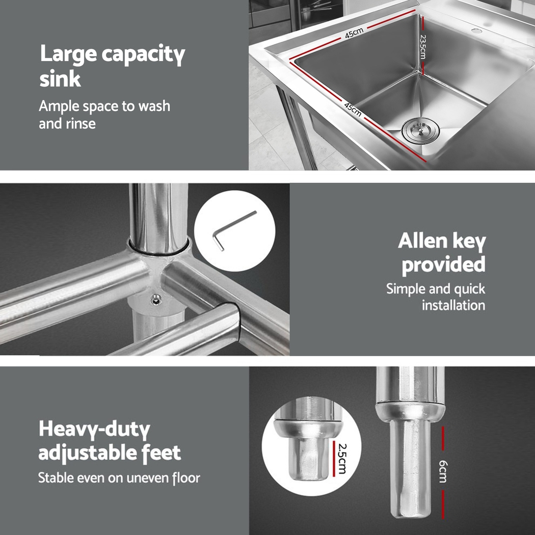 Cefito Stainless Steel Sink Bench Kitchen Work Benches Bowl Wheels 304