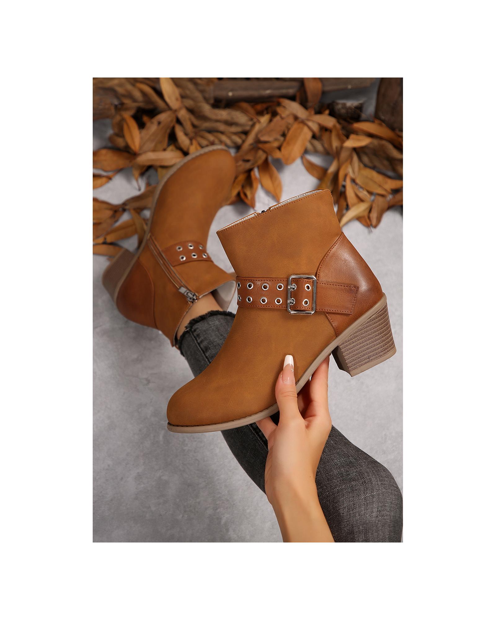 Chestnut Eyelet Buckled Chunky Heel Faux Leather Ankle Boots – 41 EU