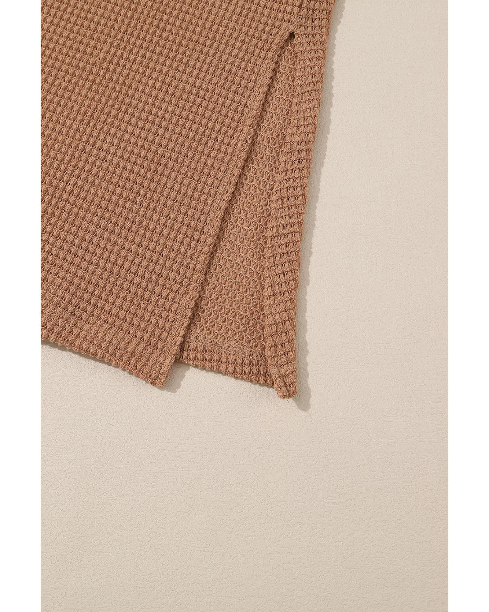 Chestnut Long Waffle Knit Cardigan with Pockets – M