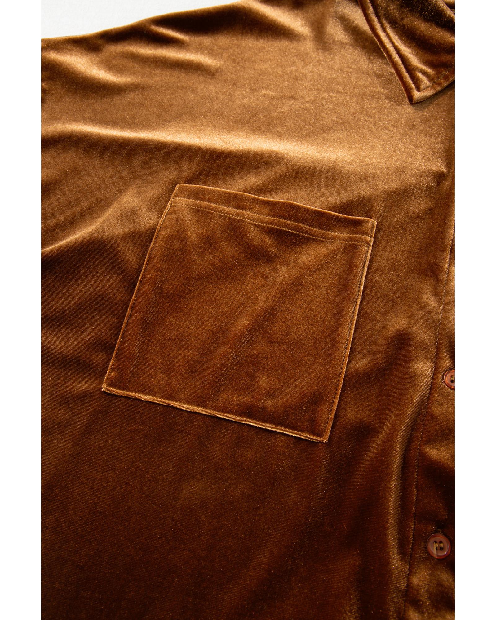 Chestnut Plus Size Velvet Chest Pocket Drop Shoulder Shirt – 4X