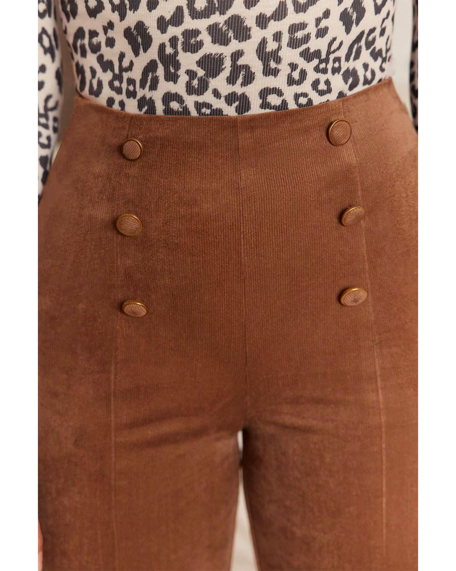 Chestnut Solid Color Double Breasted Straight Leg Pants – L