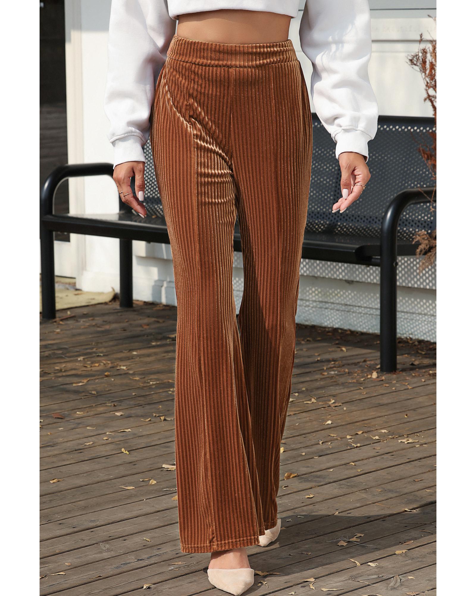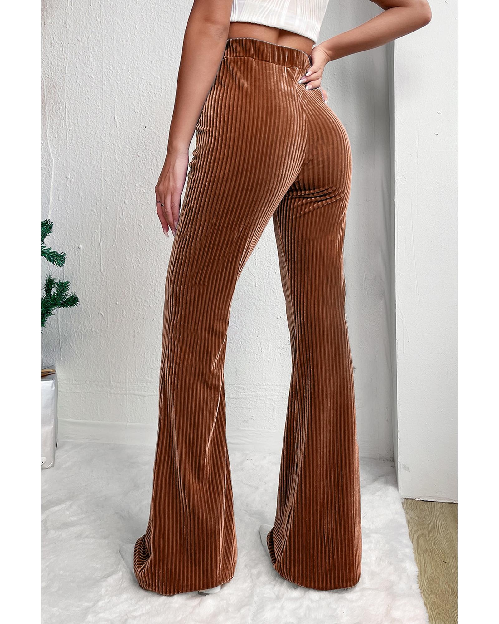 Chestnut Solid Color High Waist Flare Corduroy Pants – M