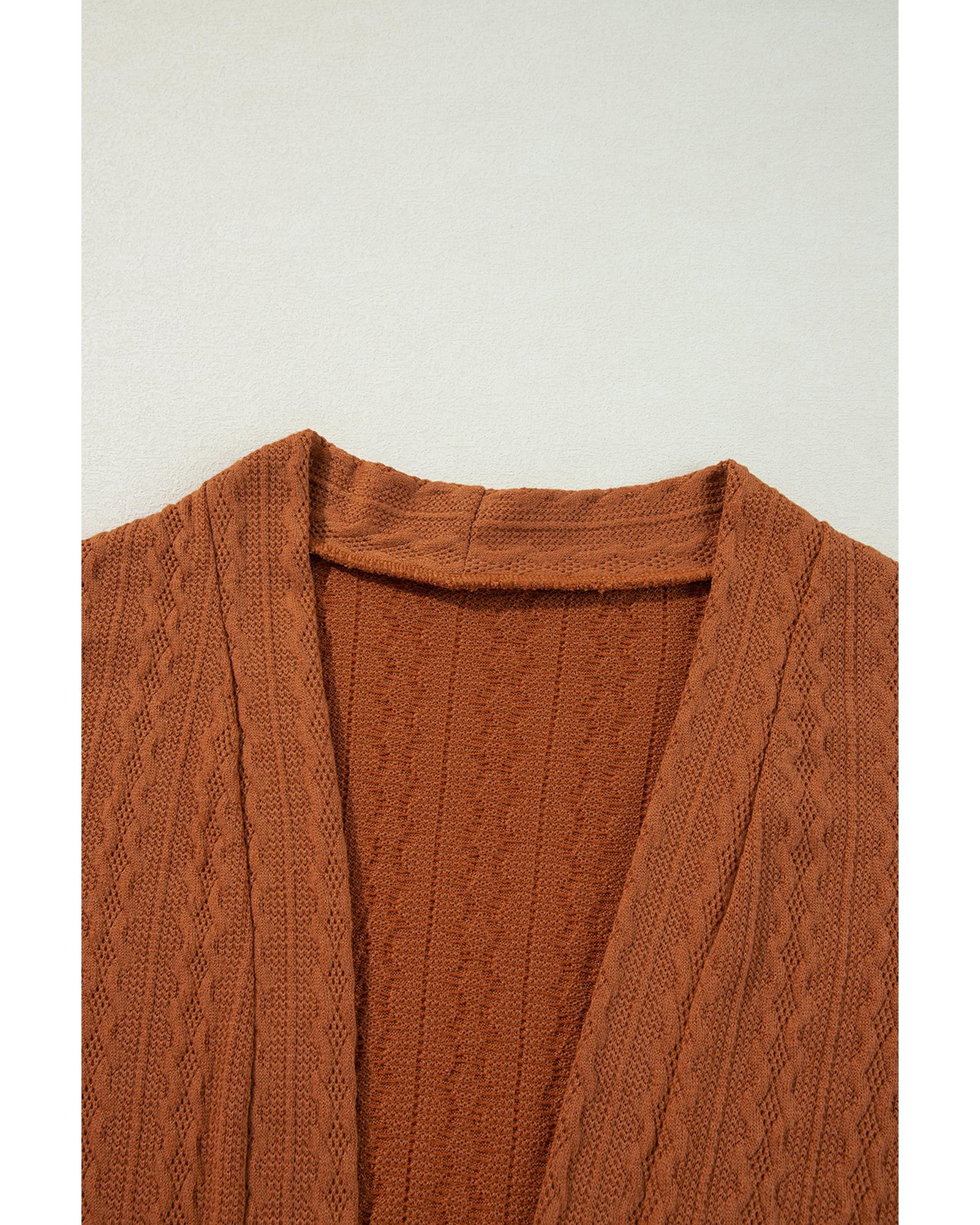 - Chestnut Textured Knit Side Pockets Open Front Cardigan