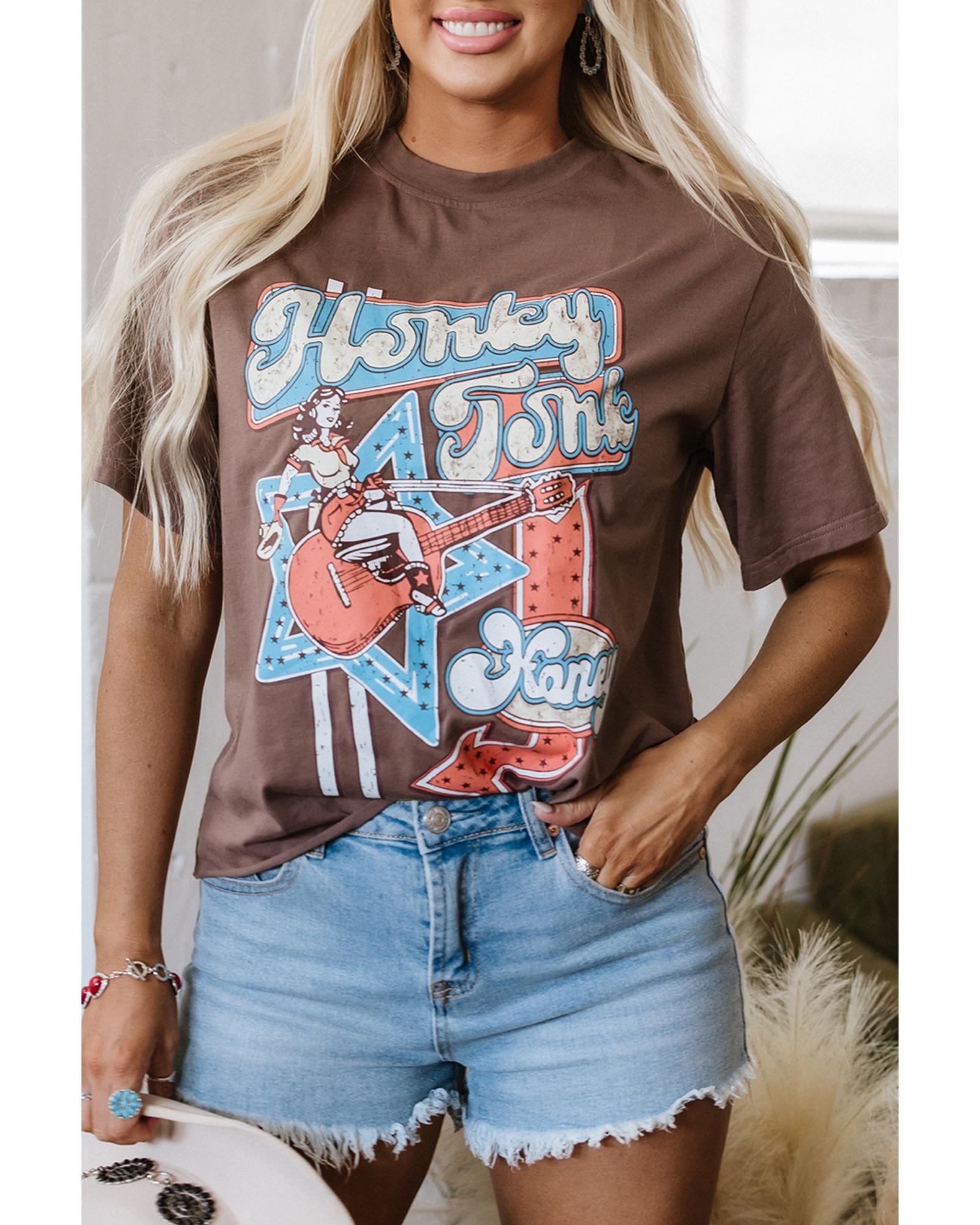 Chicory Coffee Honky Tonk Honey Graphic Crew Neck Western Fashion Tee – M