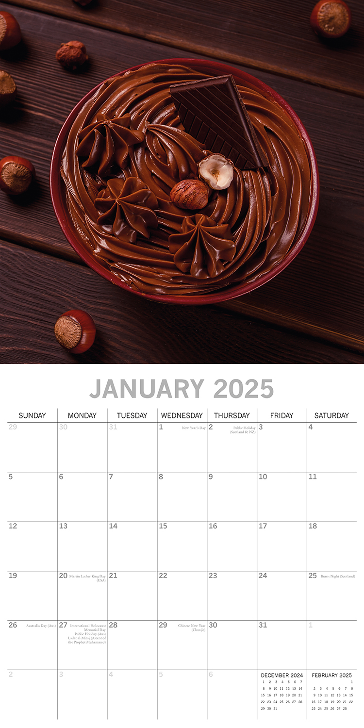 Chocolate 2025 Square Wall Calendar Food 16-Month Christmas Premium Planner Gift