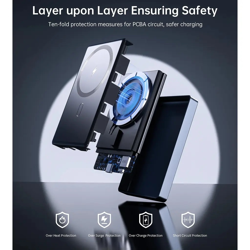Choetech B739 offers wired charging via a 20W USB-C cable to charge your device up to 60% in just 30 minutes, as well as wireless, convenient magnetic charging. Automatic output power adjustment (5W, 7.5W, 10W, 15W) ensures optimal charging for each device, without tangled wires. In addition, the B739 renews the energy of other devices while charging itself, making it even more practical.