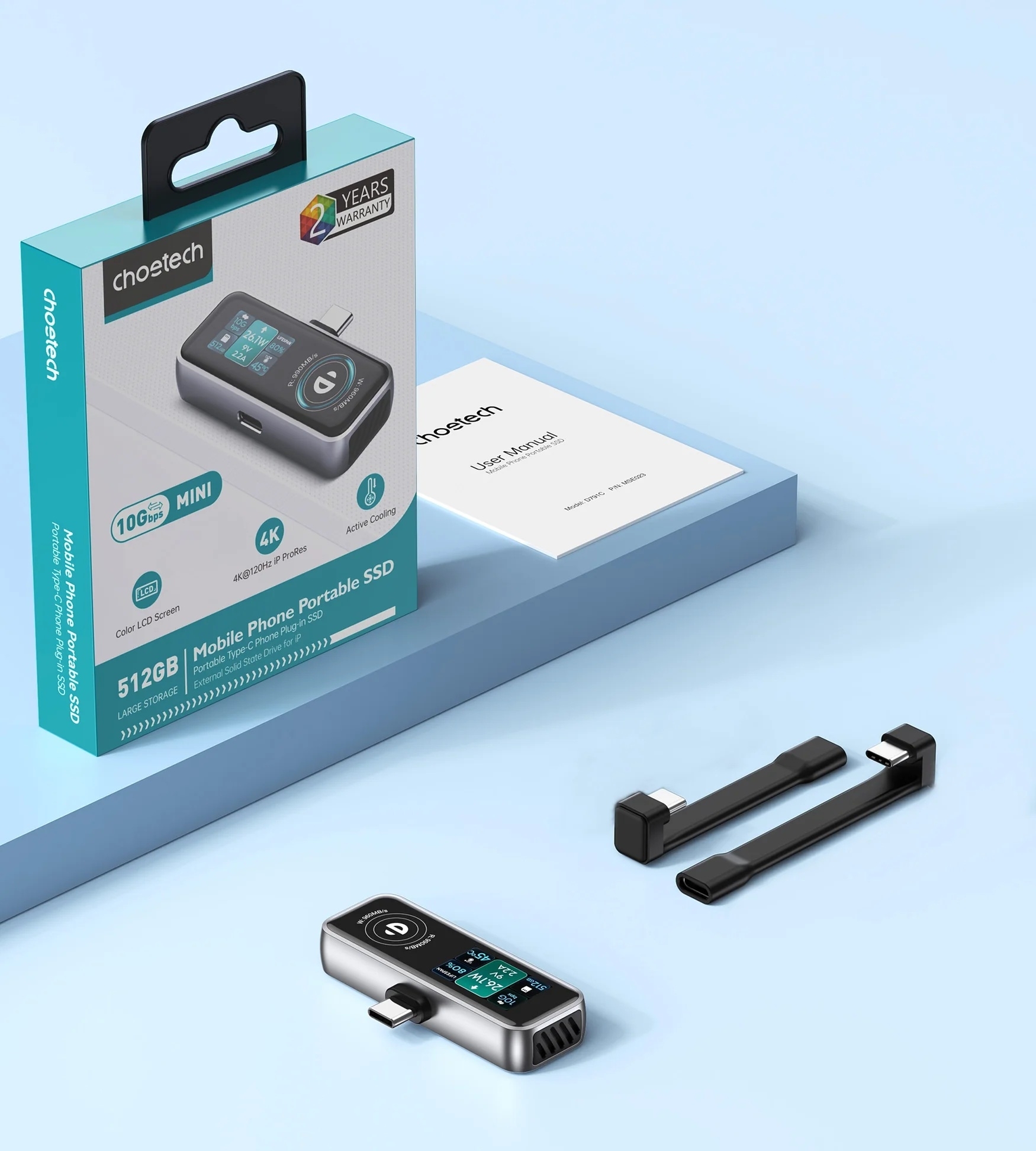 CHOETECH MSE023 Mobile Phone 512GB Portable SSD 10Gbps, Cooling Fan, for Phone Use