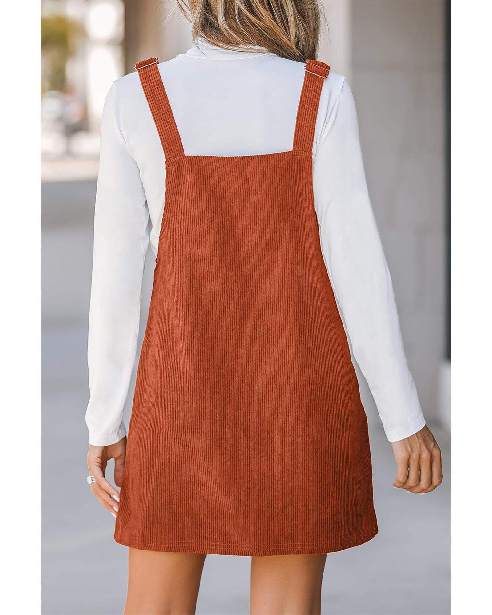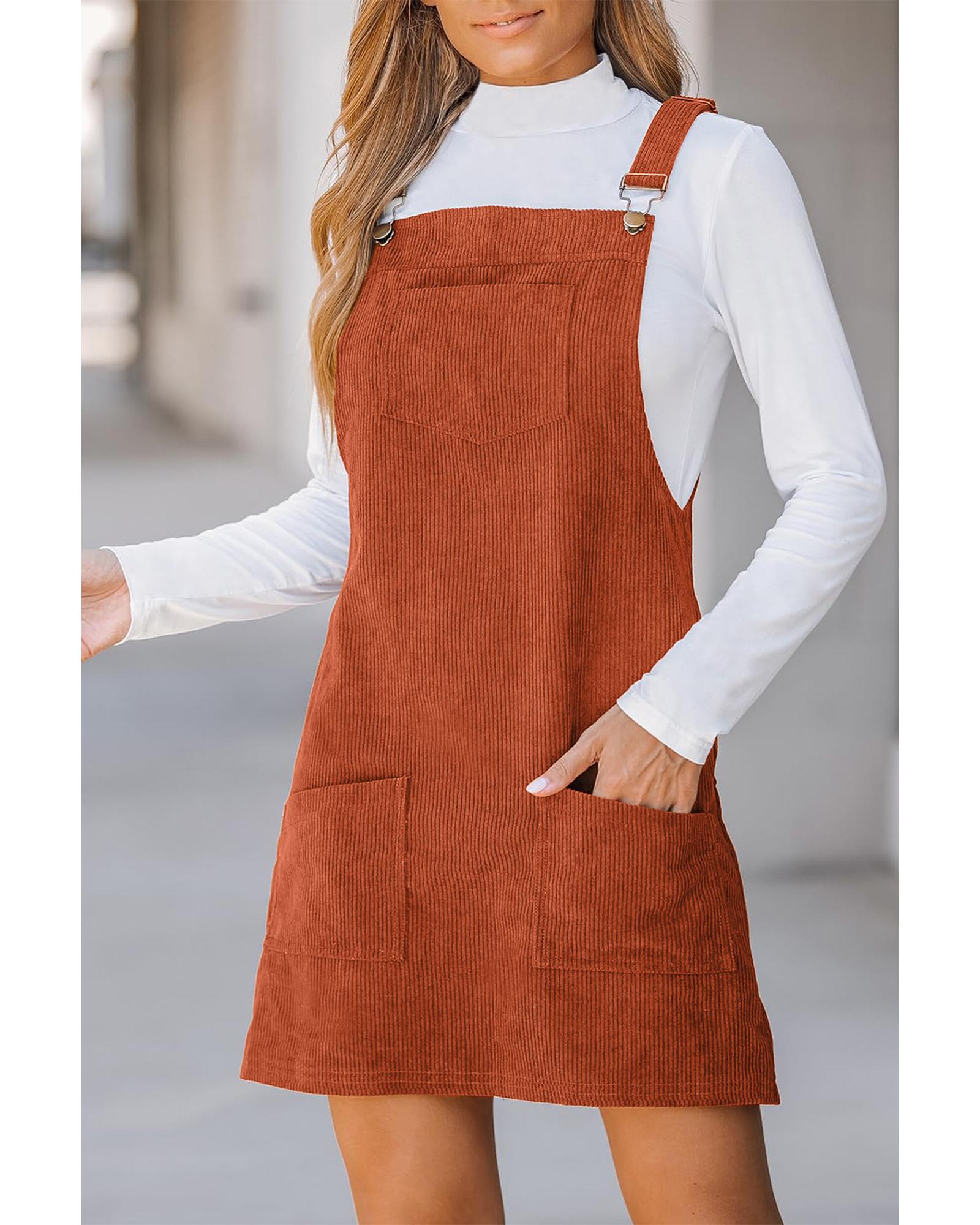 - Timeless Cinnamon Solid Front Pockets Sleeveless Corduroy Overall Dress