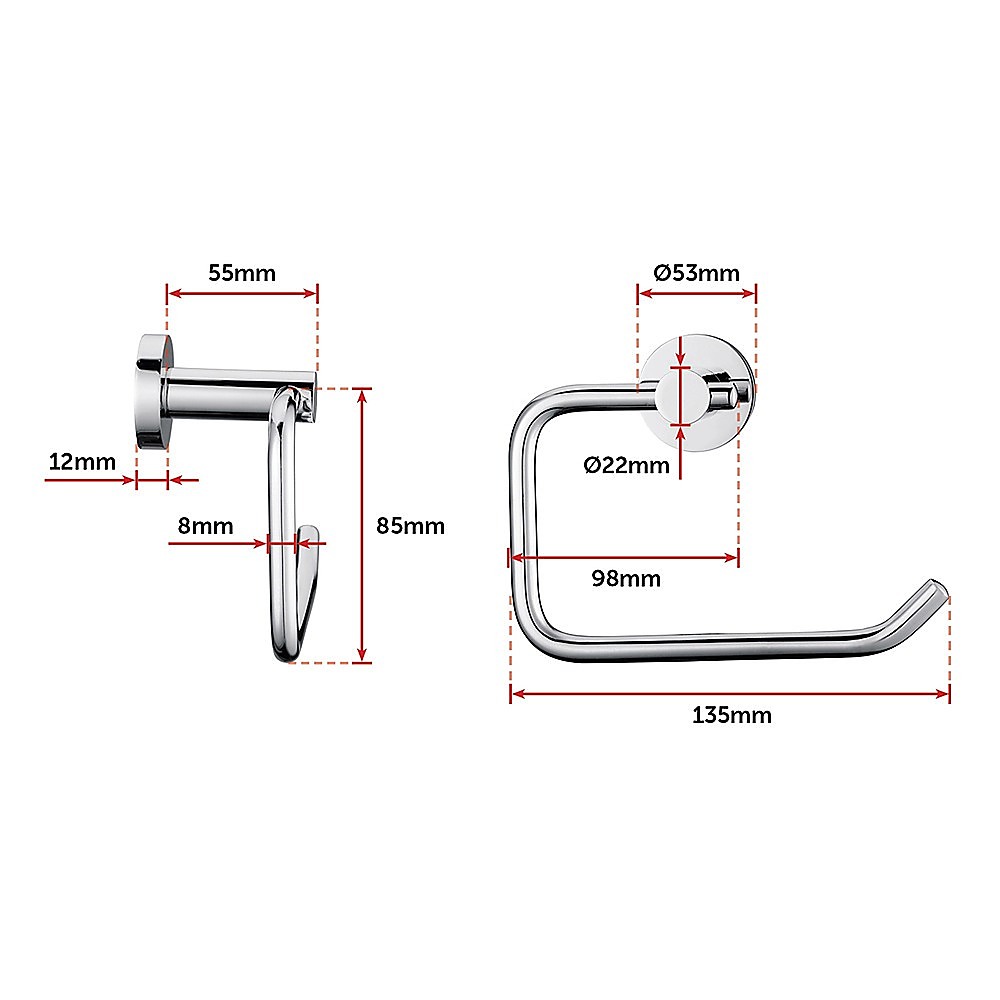 This toilet paper holder has a brilliant chrome finish. A simple hook design keeps the toilet paper on the holder without the need for a spring roller. A modern sleek design is built to last and updates any bathroom.