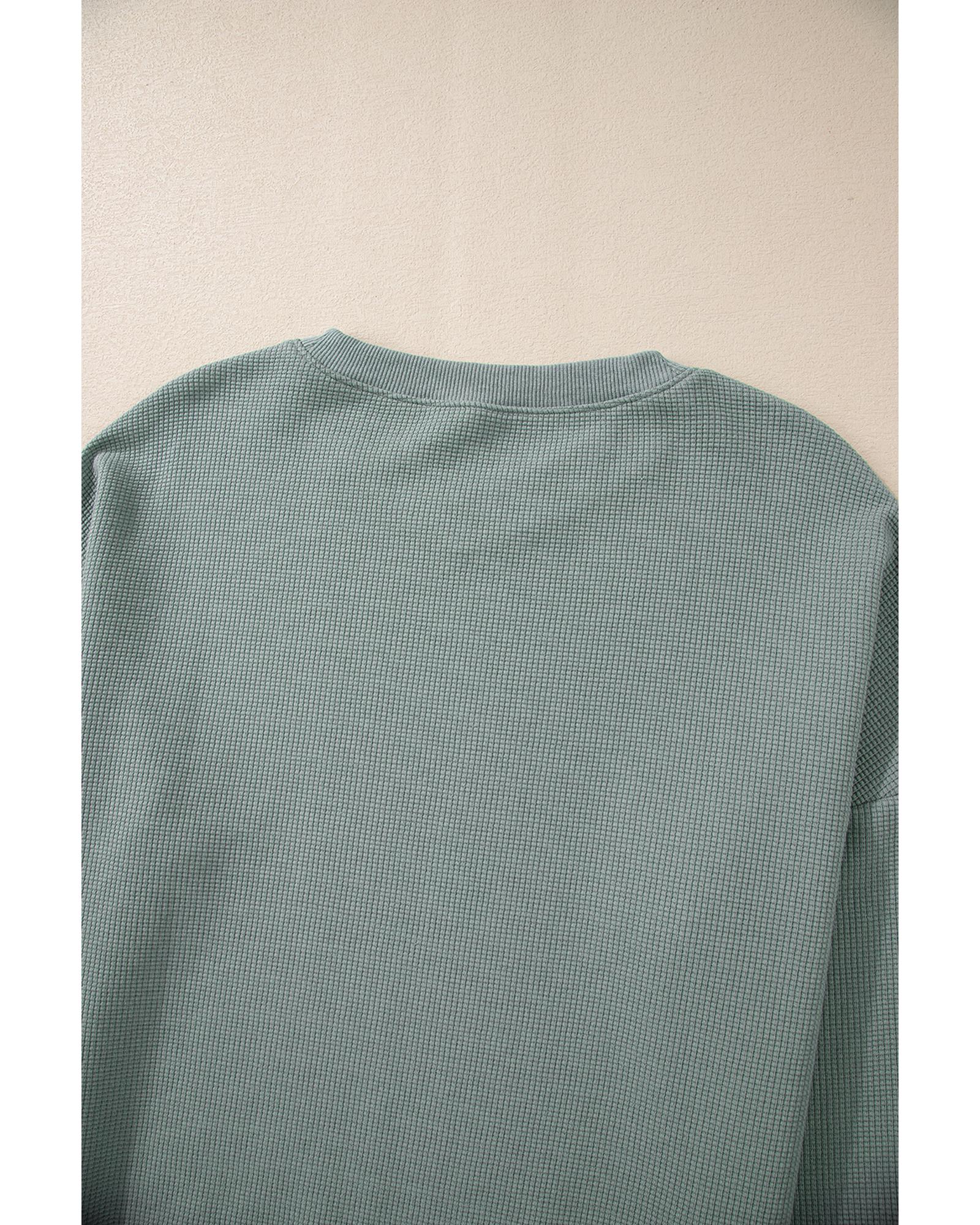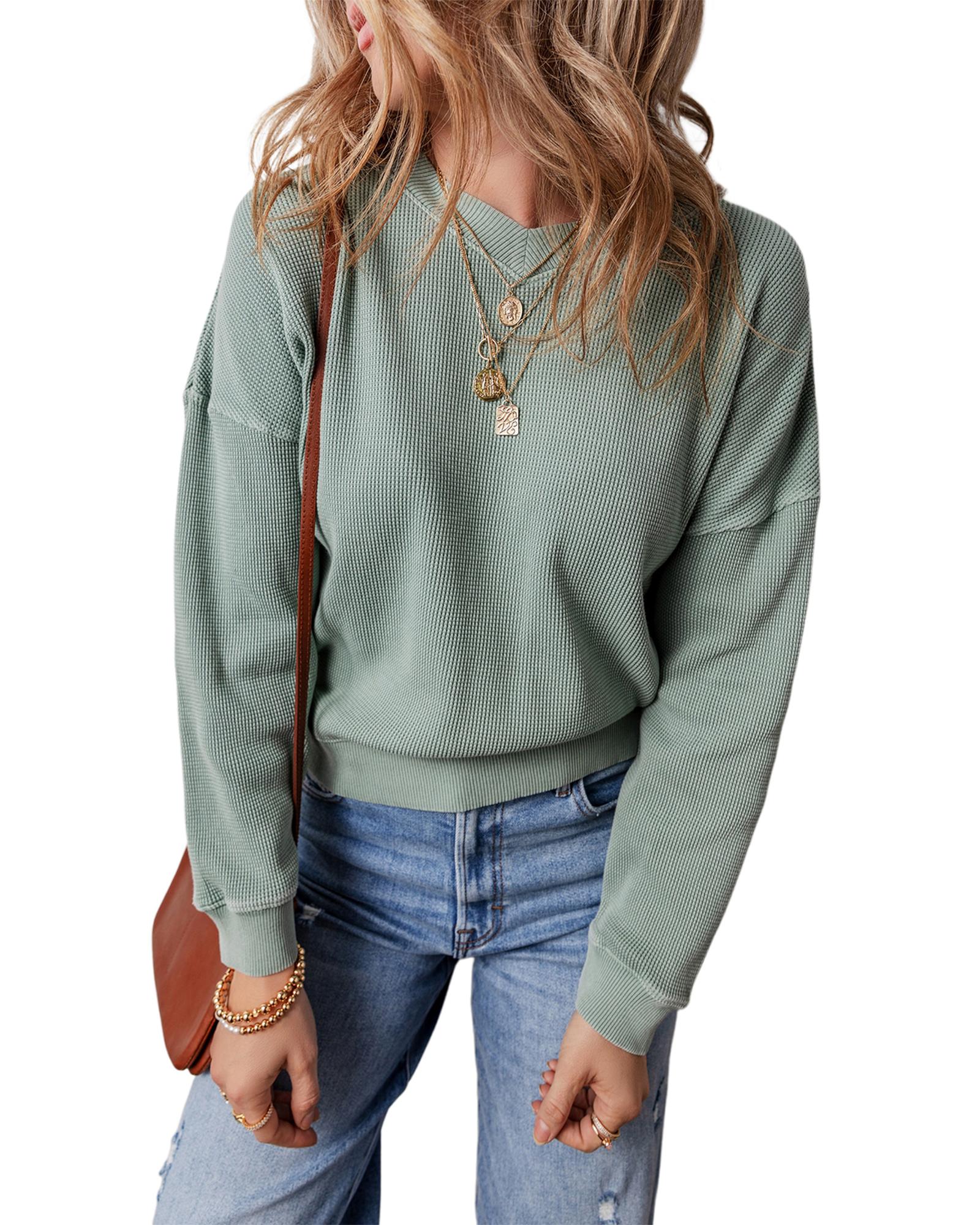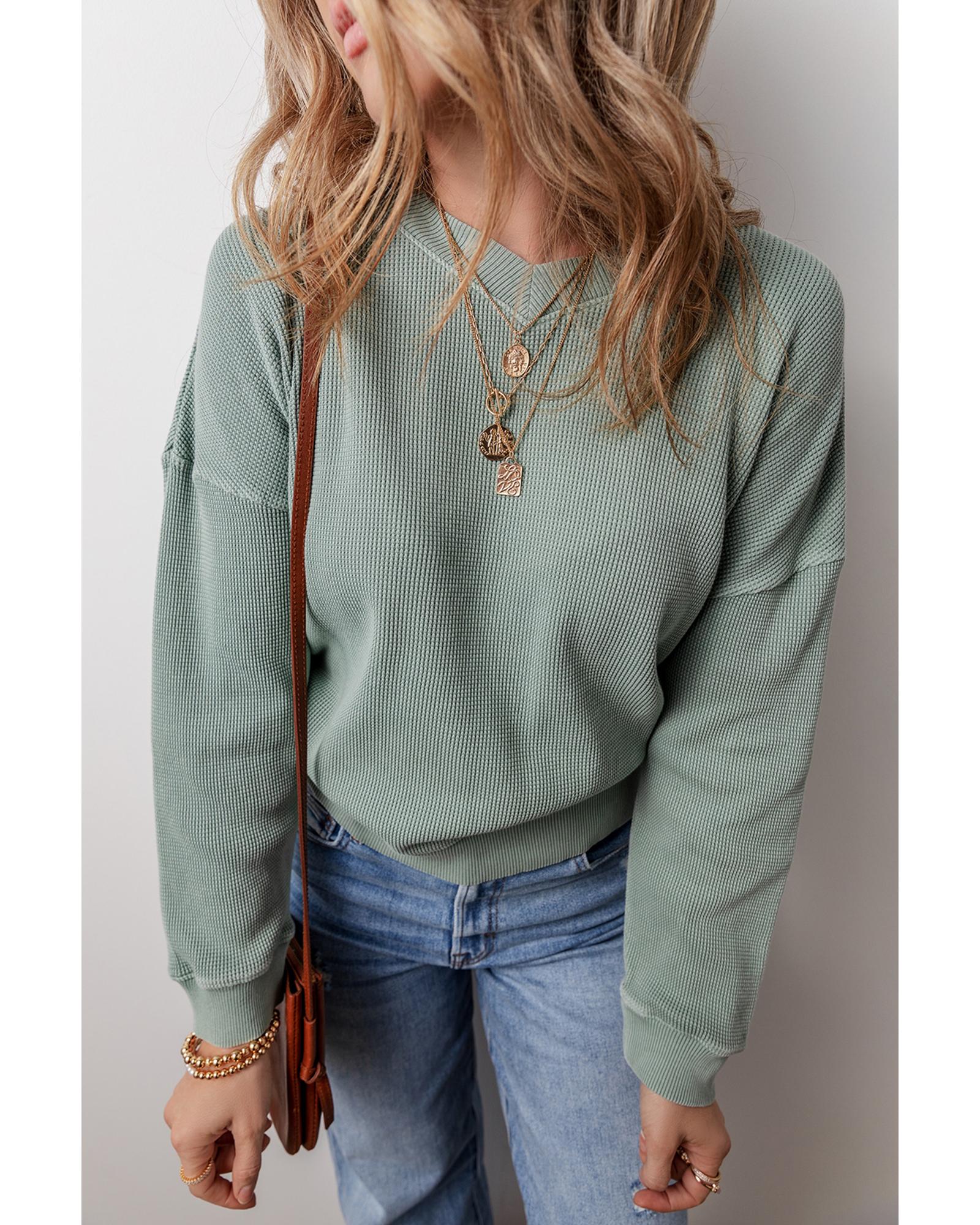 Clearly Aqua Waffle Knit Drop Shoulder V Neck Top – XL