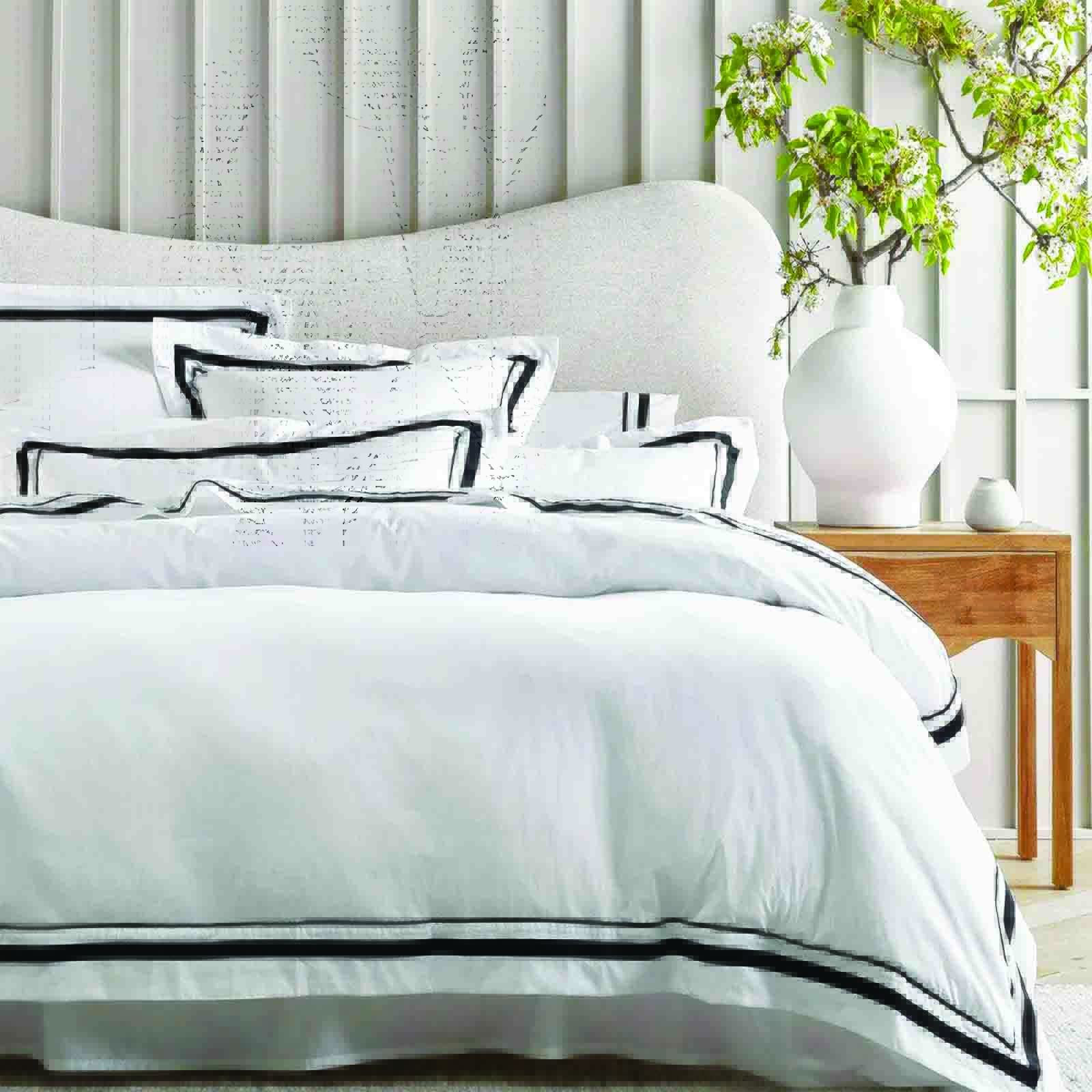 Cloud Quilt Cover Set, meticulously crafted from Egyptian Cotton 1000 Thread Count for smooth, soft, and enduring touch. Designed in an elegant white cotton base, with sophisticated trim options of lace & embroidery. The double-edged detail adds a refined, modern accent & timeless classic. Not only does this exquisite Quilt Cover Set enhance your home, but it also reflects our commitment to sustainability. European Pillowcases sold separately.