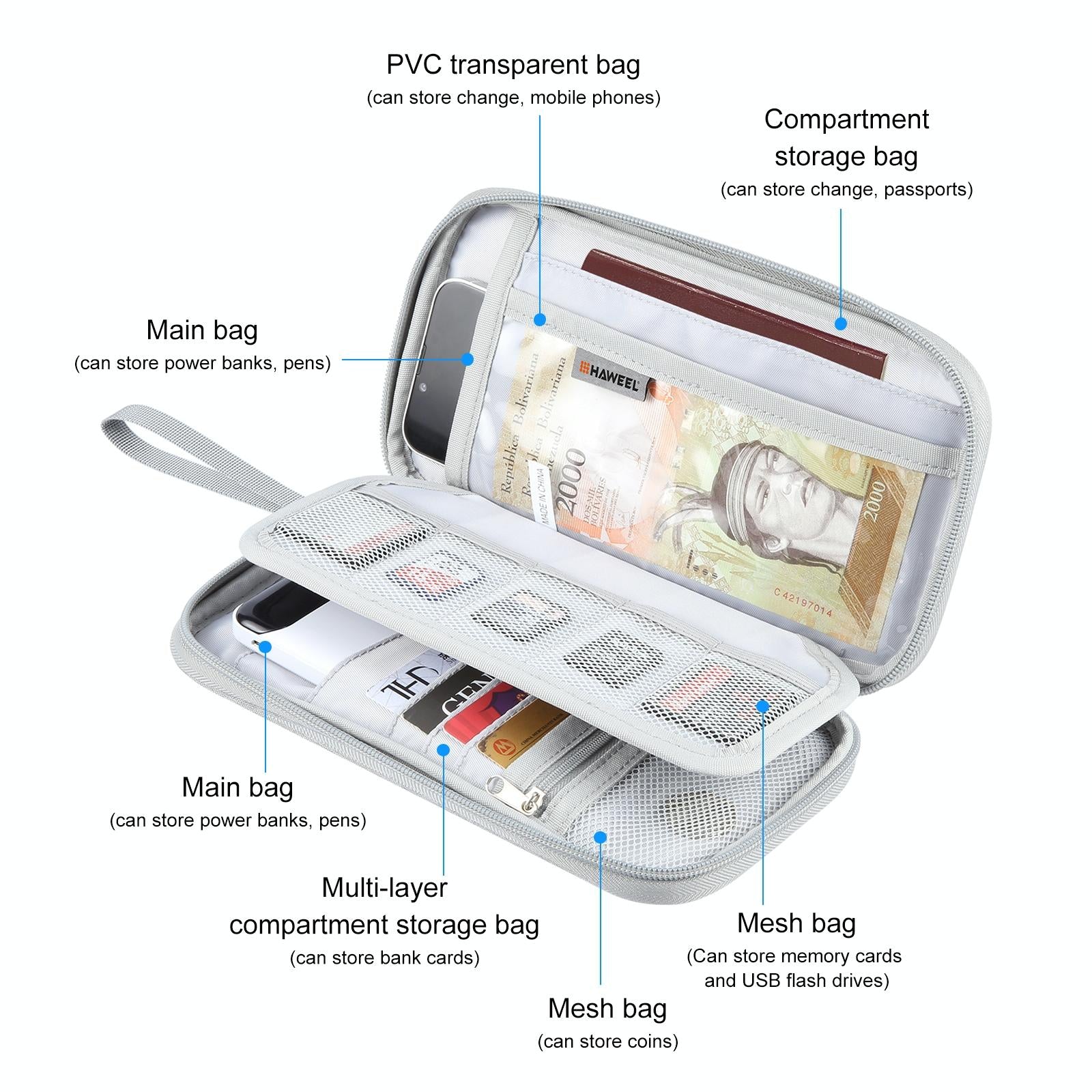 • 1 x Clutch Bag For Passports Cards Documents Grey