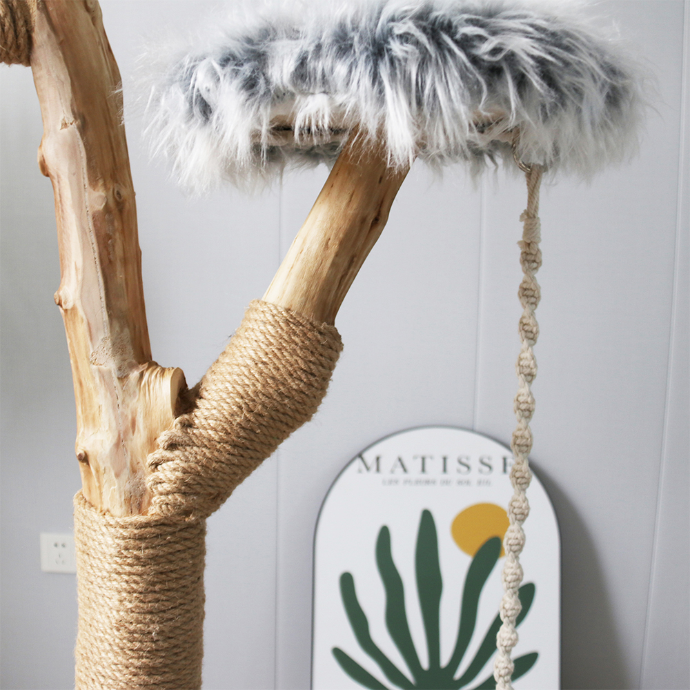 Give your furry companion the ultimate lounging spot with the CMISSTREE Modern Cat Tree with Hanging Hammock, featuring two perches, including a spacious, hanging hammock basket with a luxurious, removable soft cushion. Hand-crafted with care, each cat tower is a one-of-a-kind creation, ensuring that you own a cat tree like no other in the world.