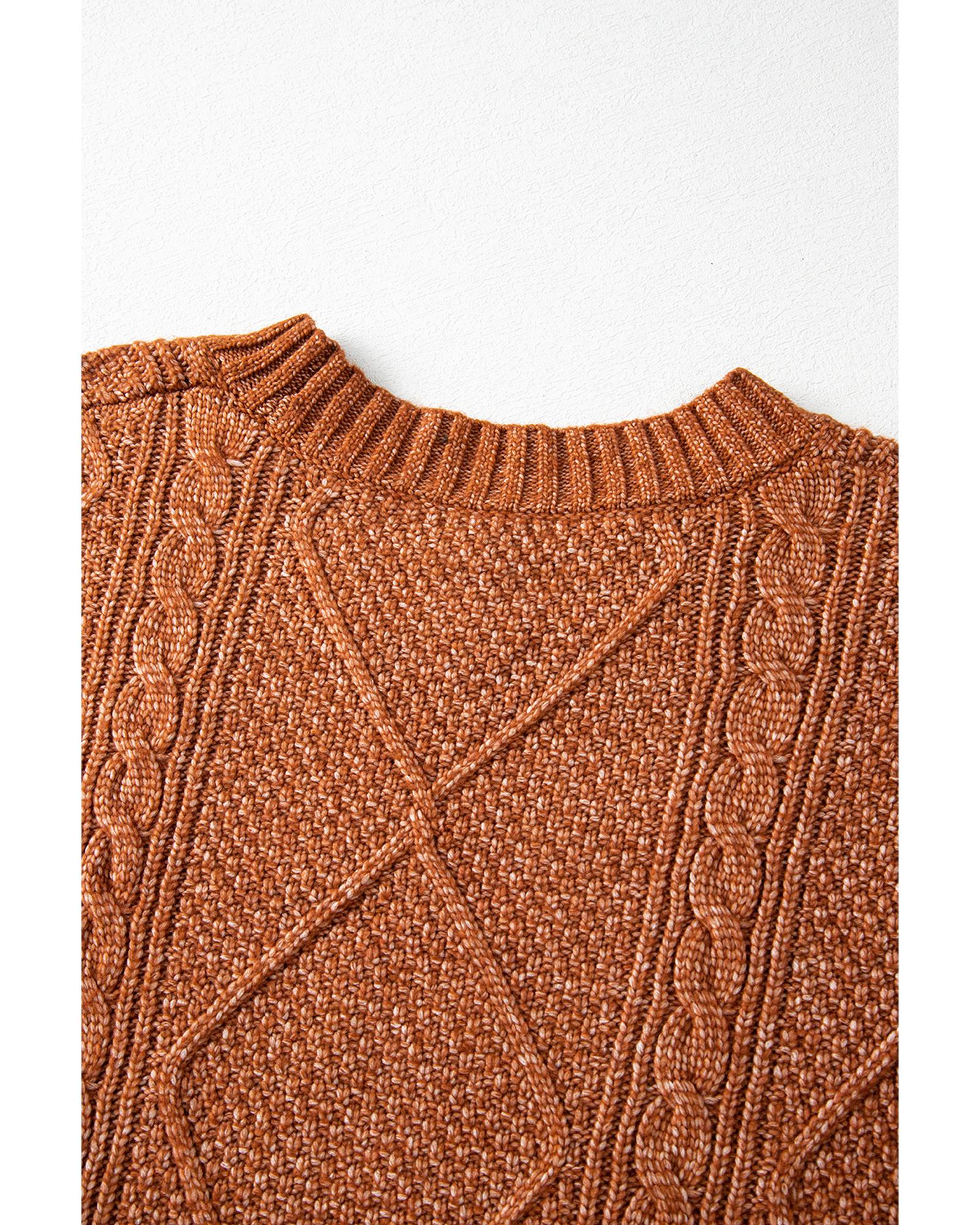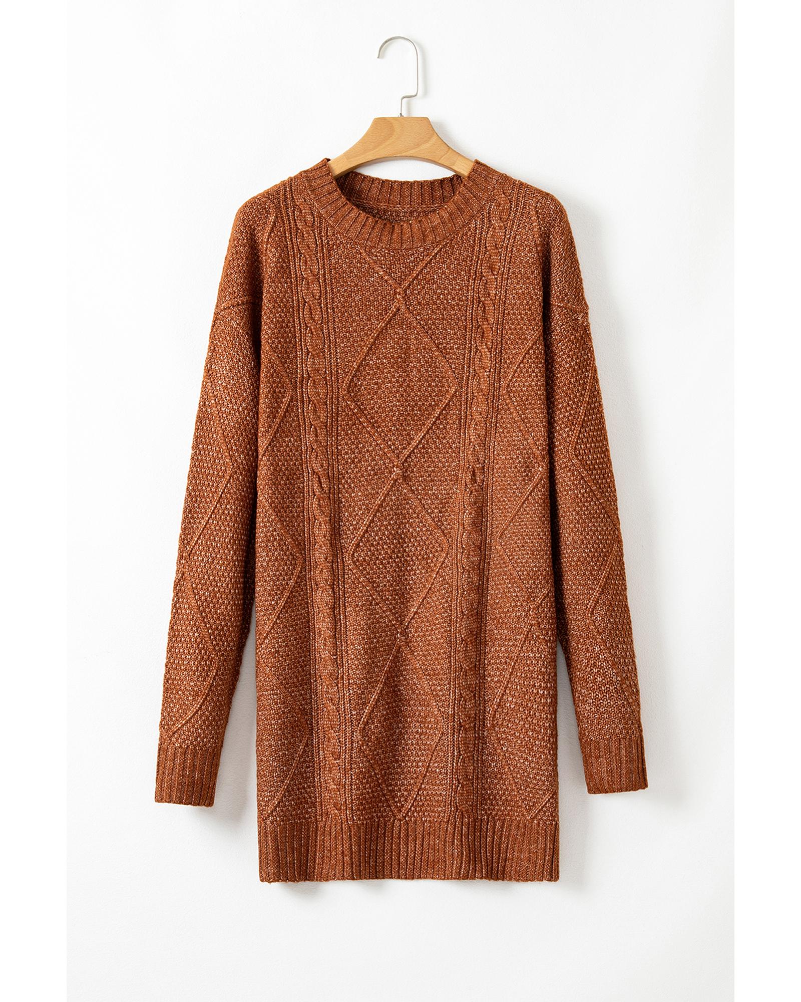 Coffee Cable Knit Drop Shoulder Loose Fit Sweater Dress – M