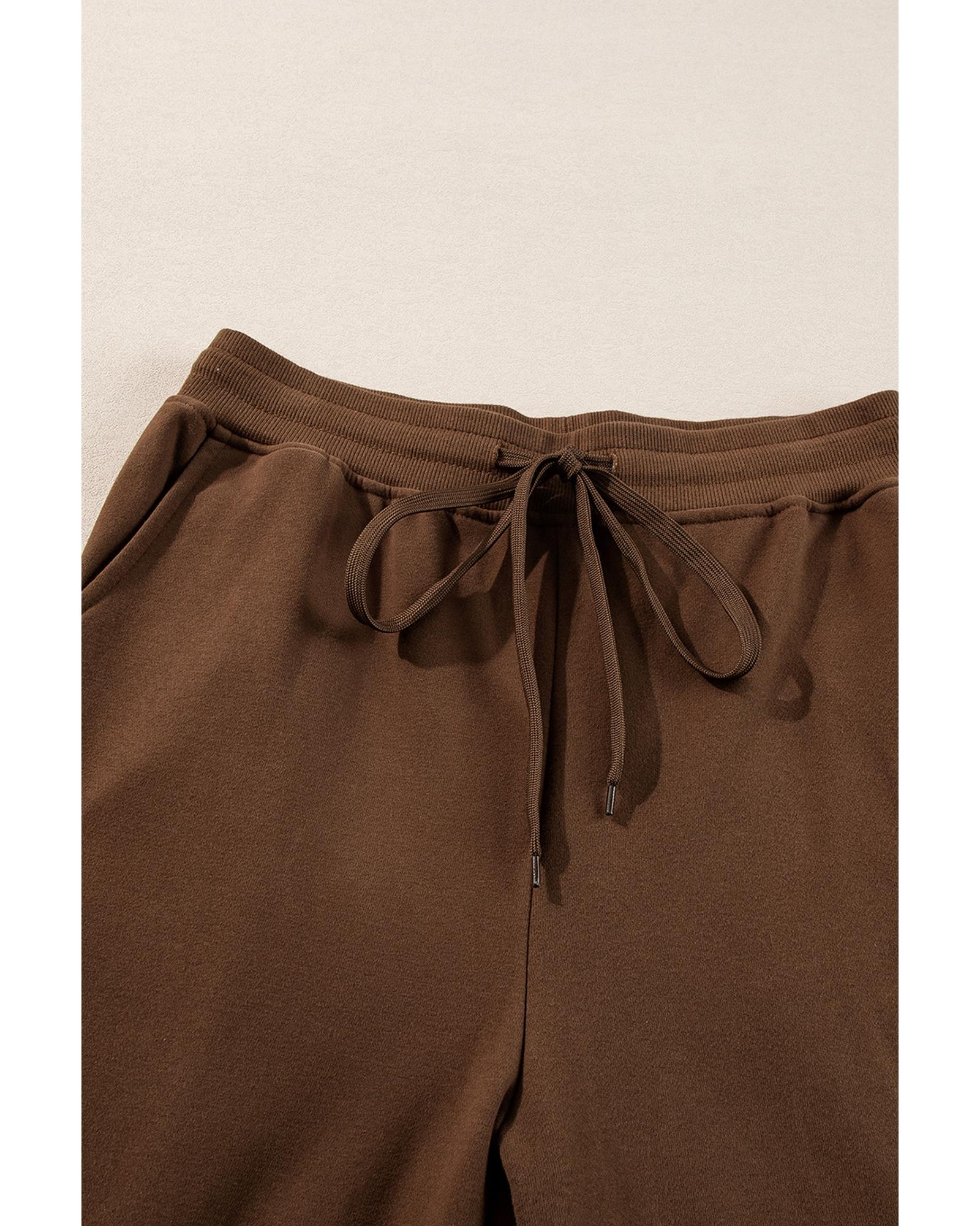 Coffee Solid Color High Low Pullover and Skinny Pants Set – S