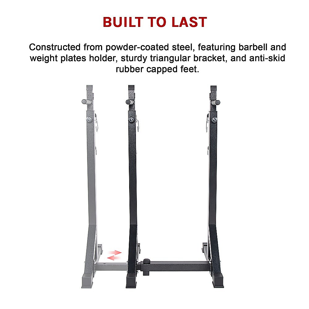 For athletes in training or fitness enthusiasts, squats and deadlifts are an important part of weight training. Without adequate strength, you risk overuse injuries to your joints and tendons. With this adjustable barbell stand by Randy Travis Machinery, though, you can help prevent overuse injuries and build strength at the same time. Its sturdy construction supports your barbell set as you work out.