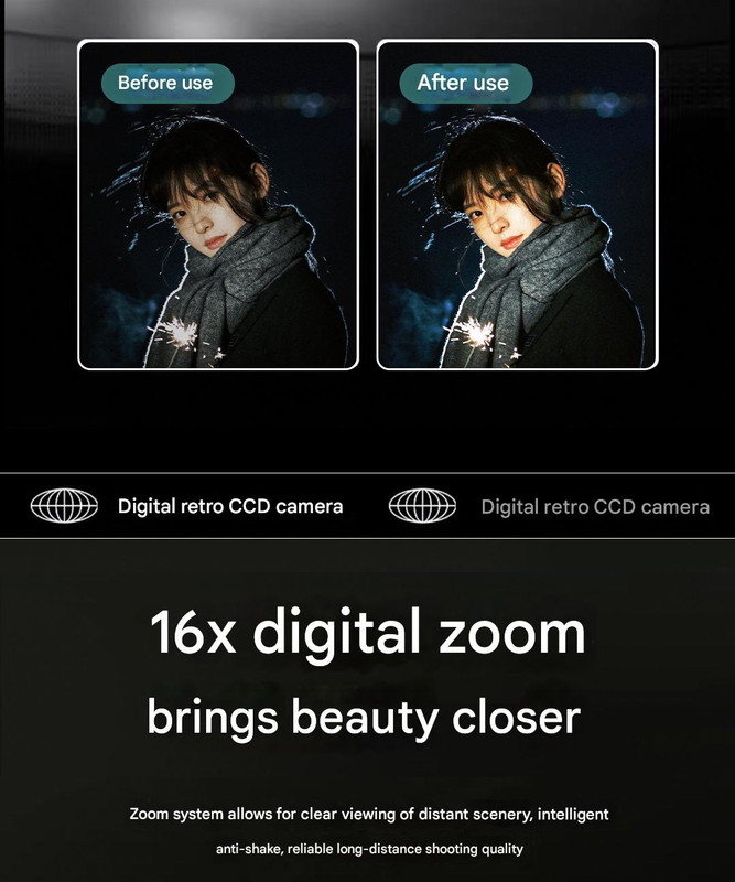 - Retro CCD Camera Style: Combines a classic aesthetic with modern digital capabilities.