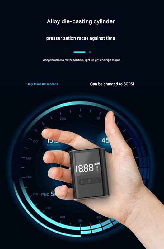 This air pump boasts a brushless direct current motor designed for efficient, quiet, and long-lasting performance. Its small dimensions (approximately 35mm x 53mm x 88mm) and lightweight construction make it incredibly easy to carry on bike rides or store in a gear bag. It comes equipped with various nozzle attachments for versatility across different inflation tasks.