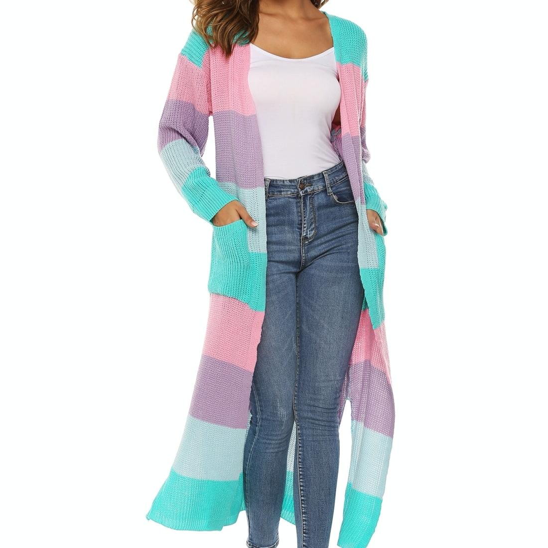 Contrast Striped Knit Sweater Blue Pink – L – Blue Pink S