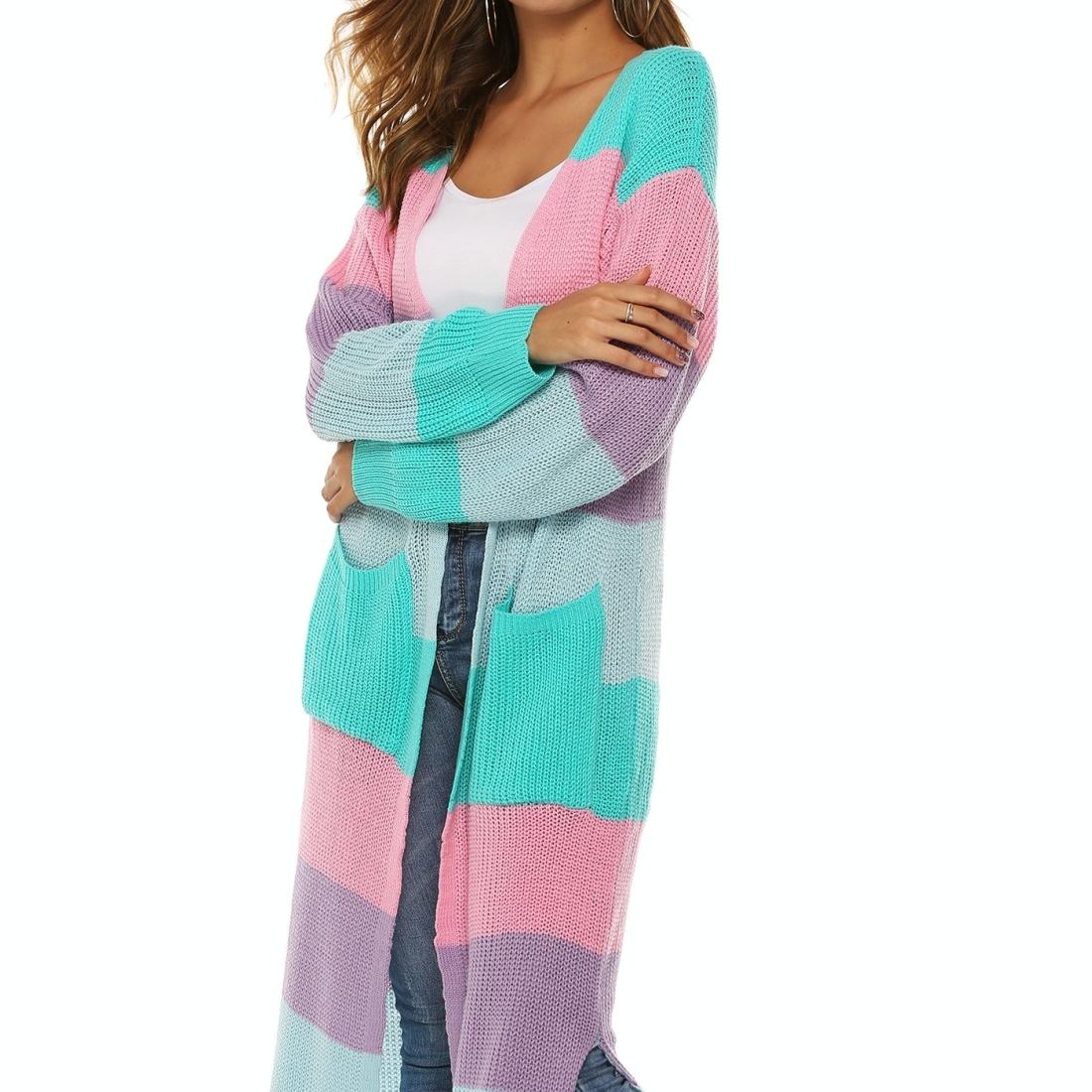 Autumn And Winter Long Sweater Collision Colour Knitted Cardigan Trench Coat - Dark Grey - S