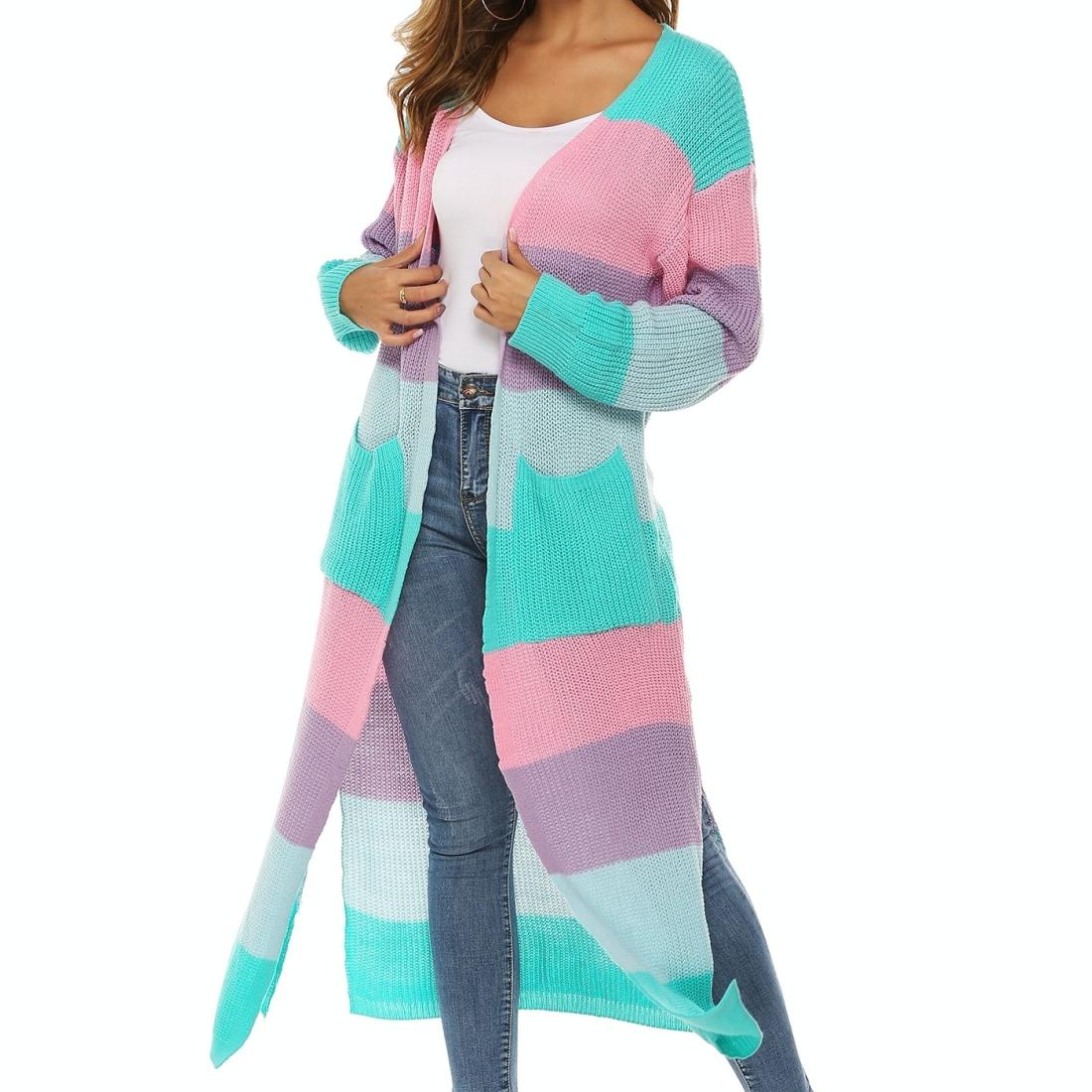 Contrast Striped Knit Sweater Blue Pink – L – Orange Green S