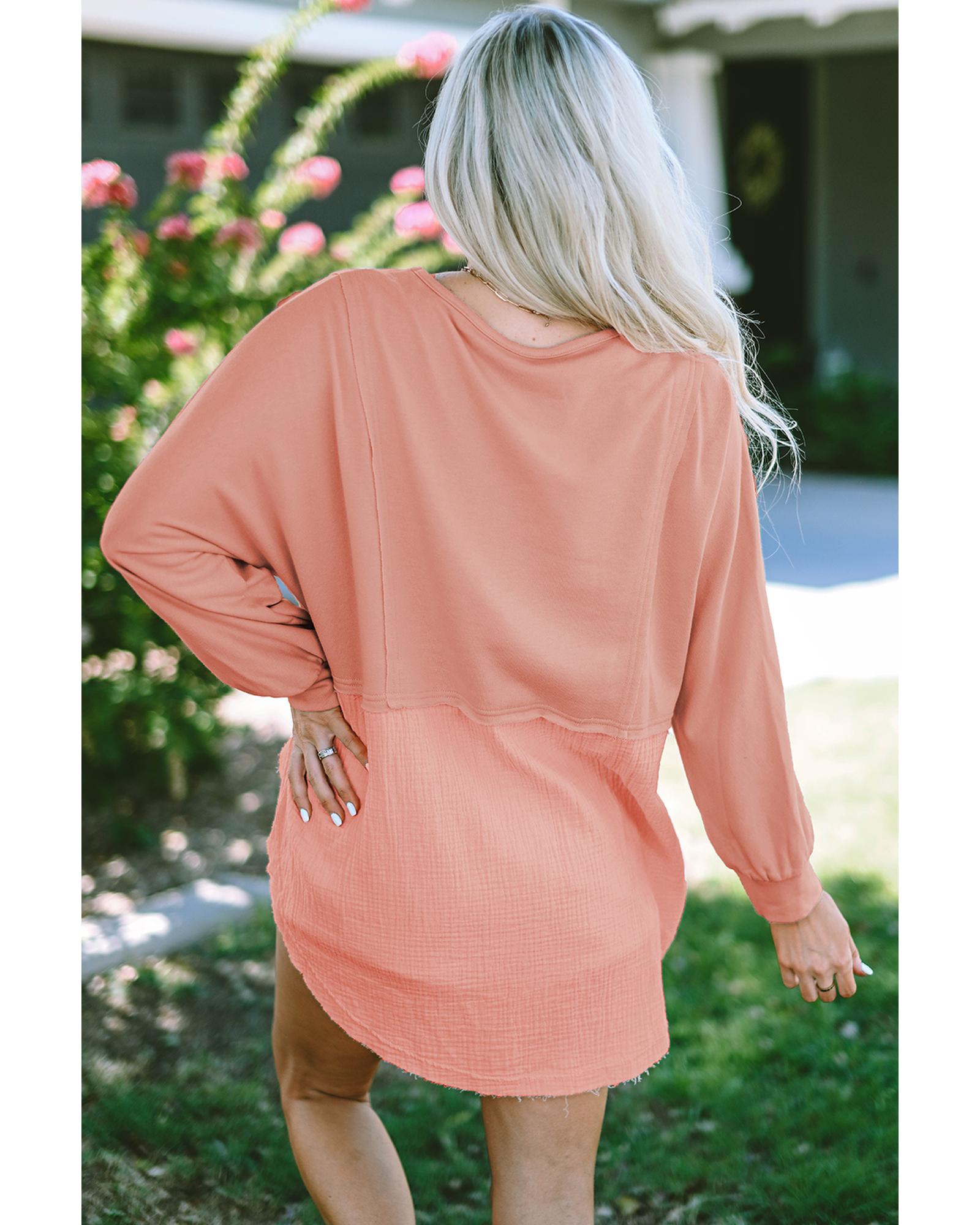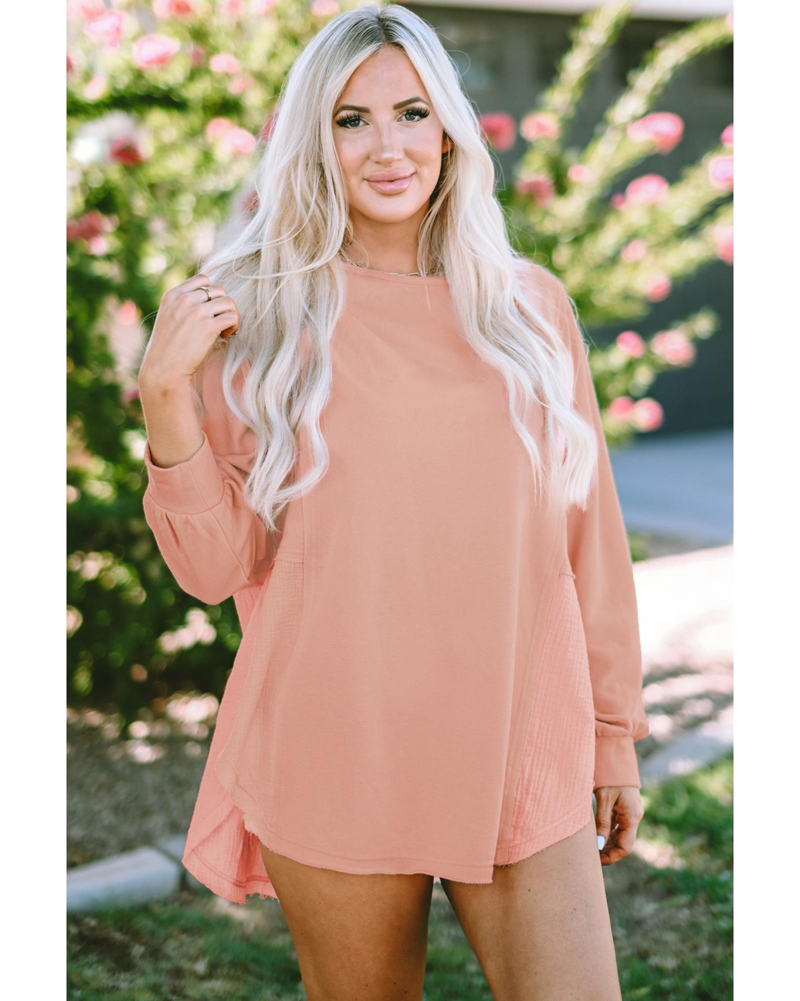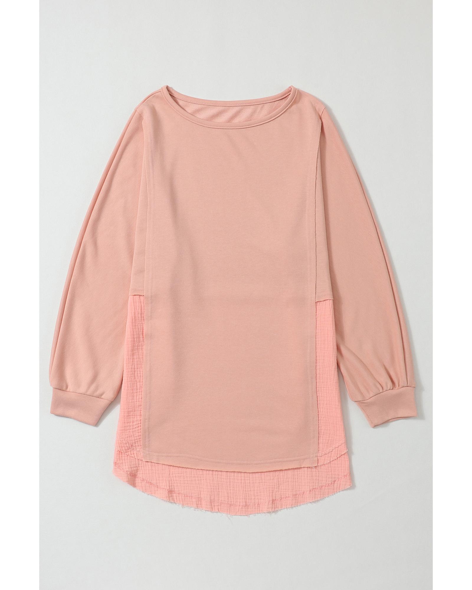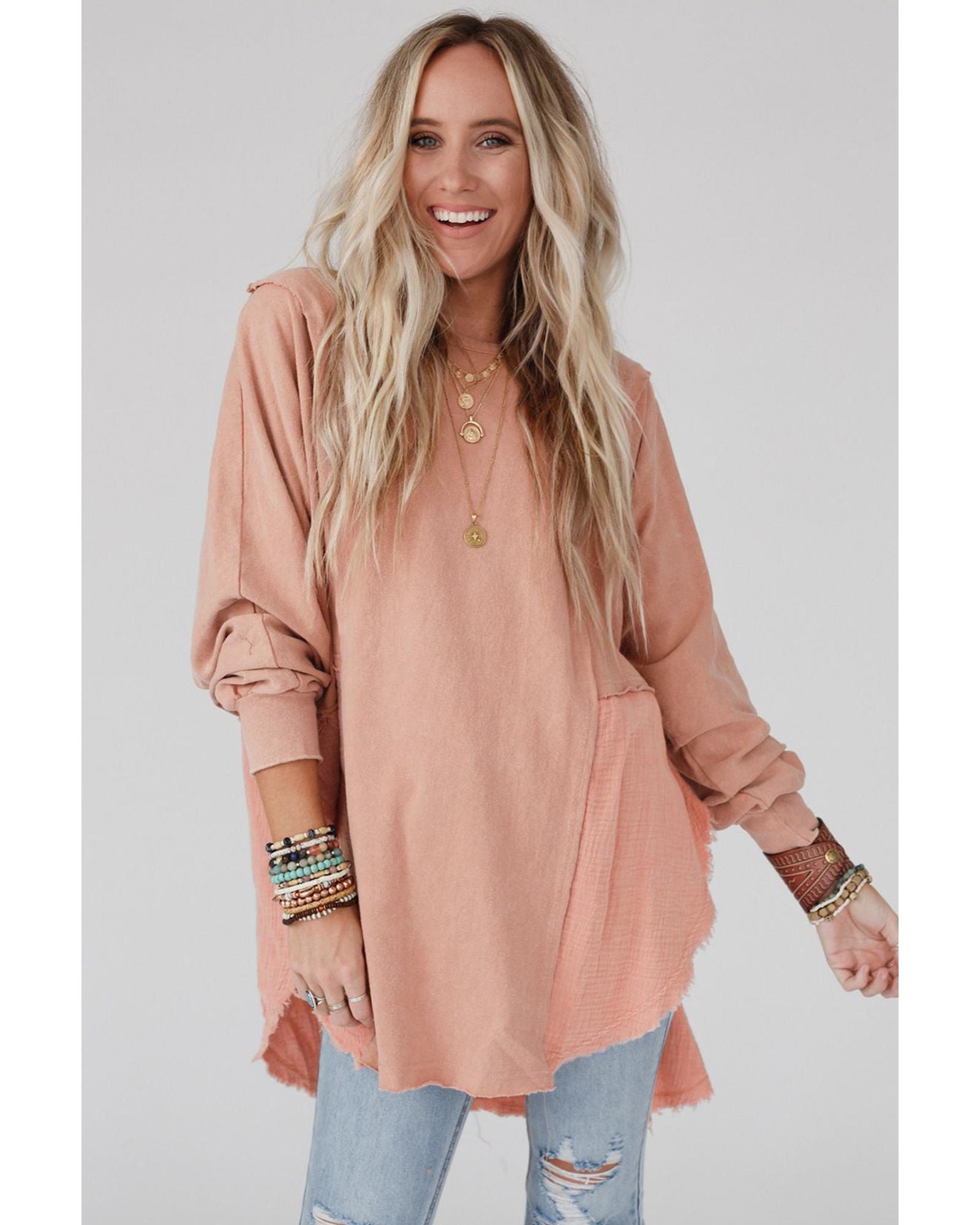 Crinkle Splicing Raw Hem High Low Oversized Blouse – M