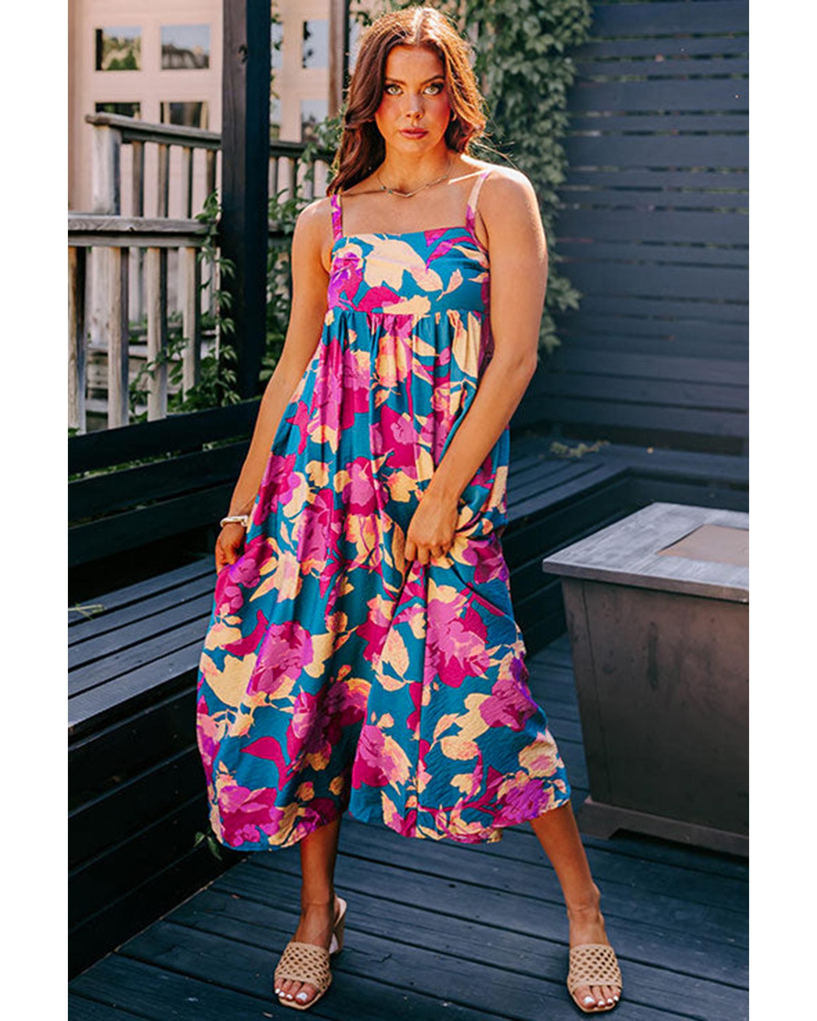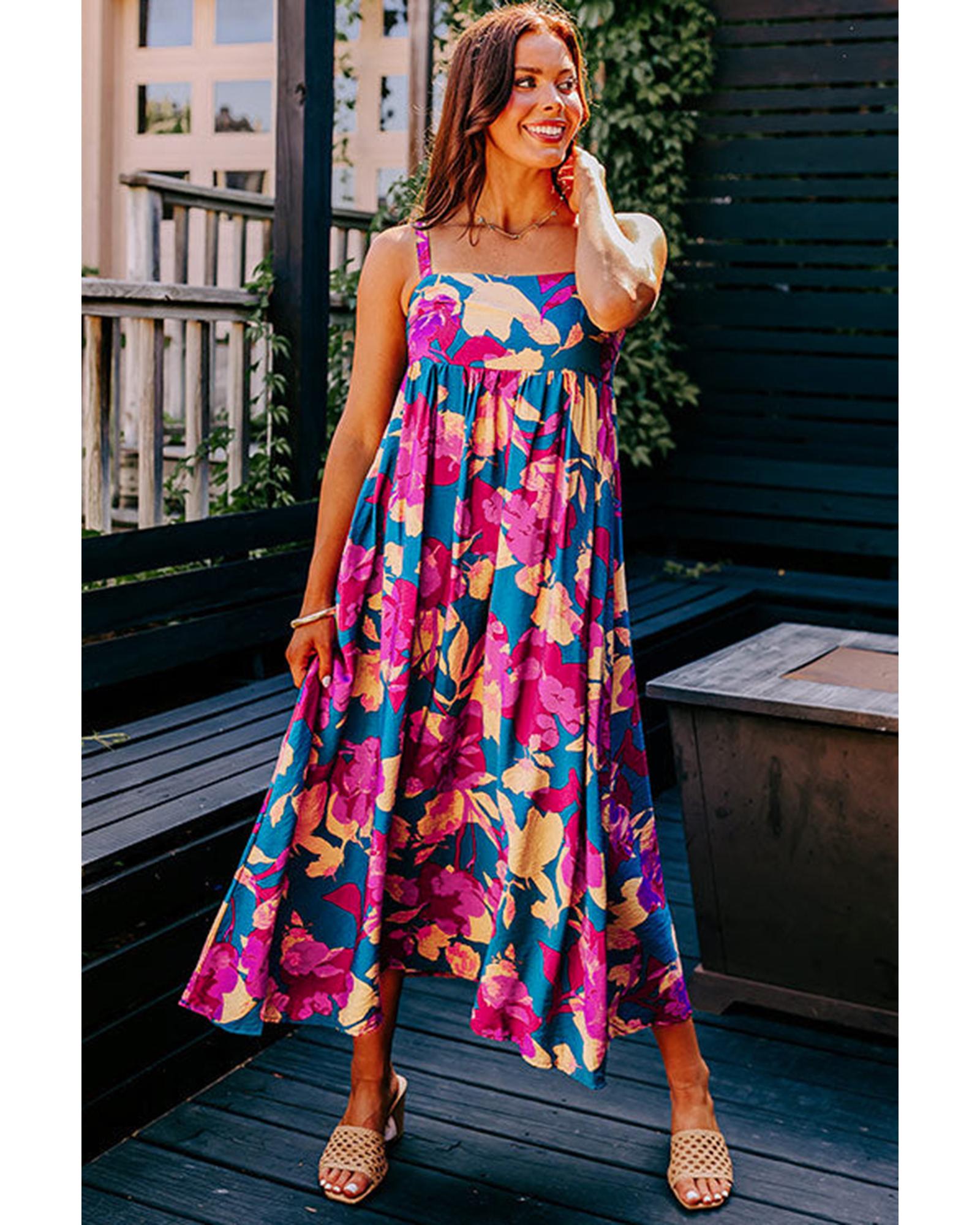 Azura Exchange Multicolor Boho Floral Collared Long Sleeve Ruffled Dress - M