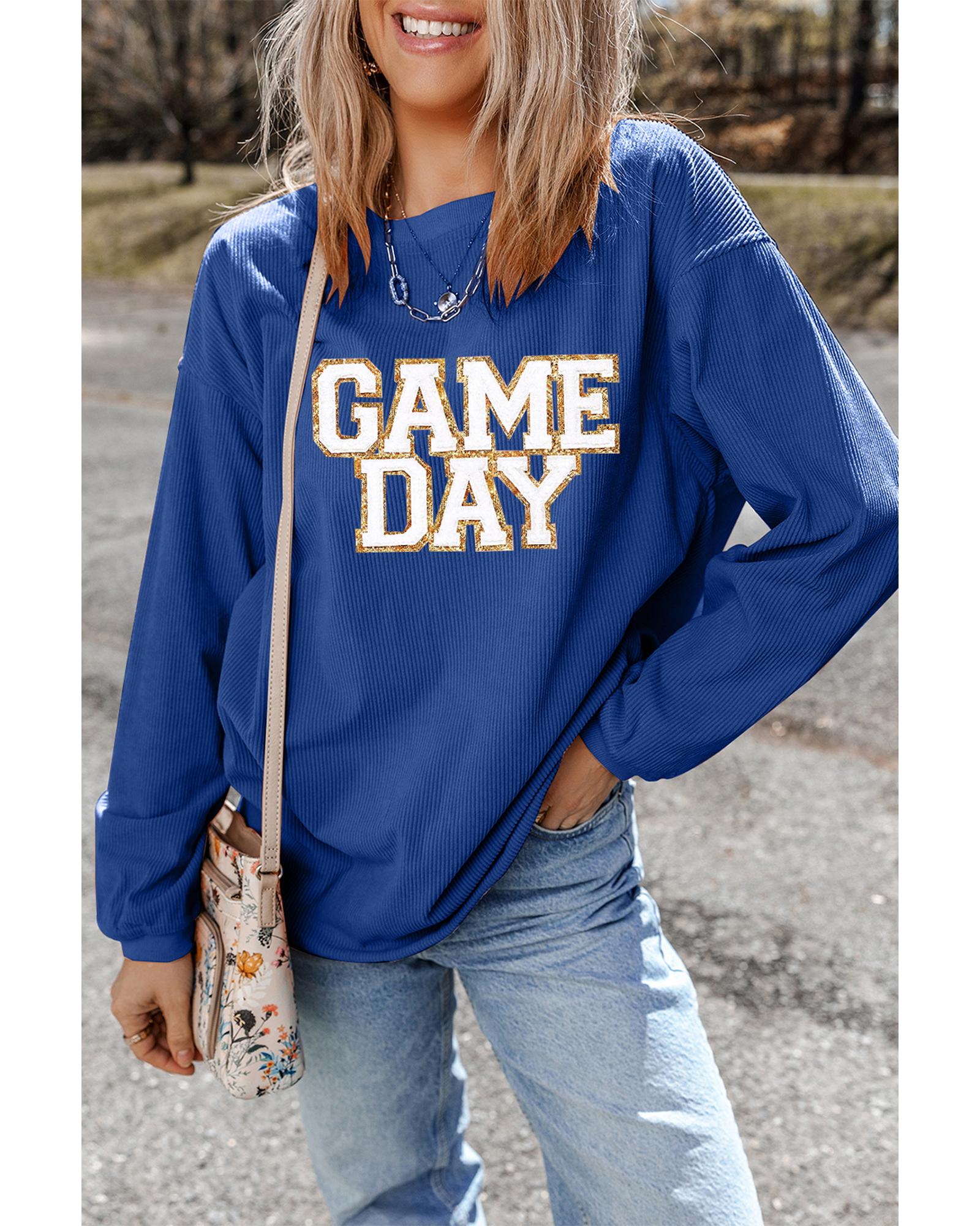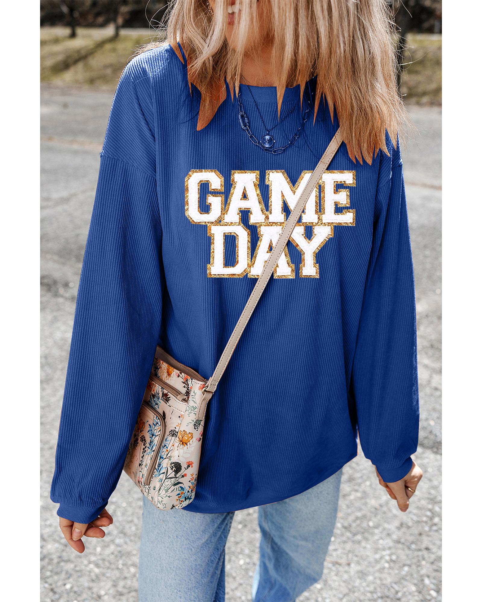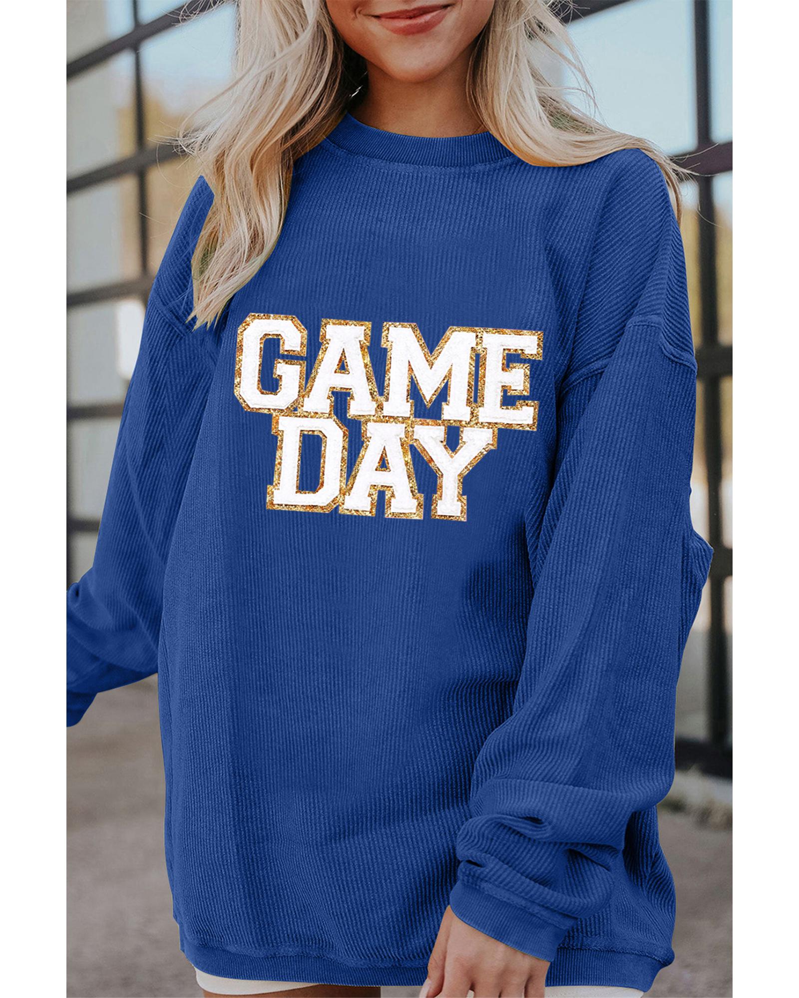 - Dark Blue GAME DAY Glitter Detail Ribbed Drop Shoulder Sweatshirt