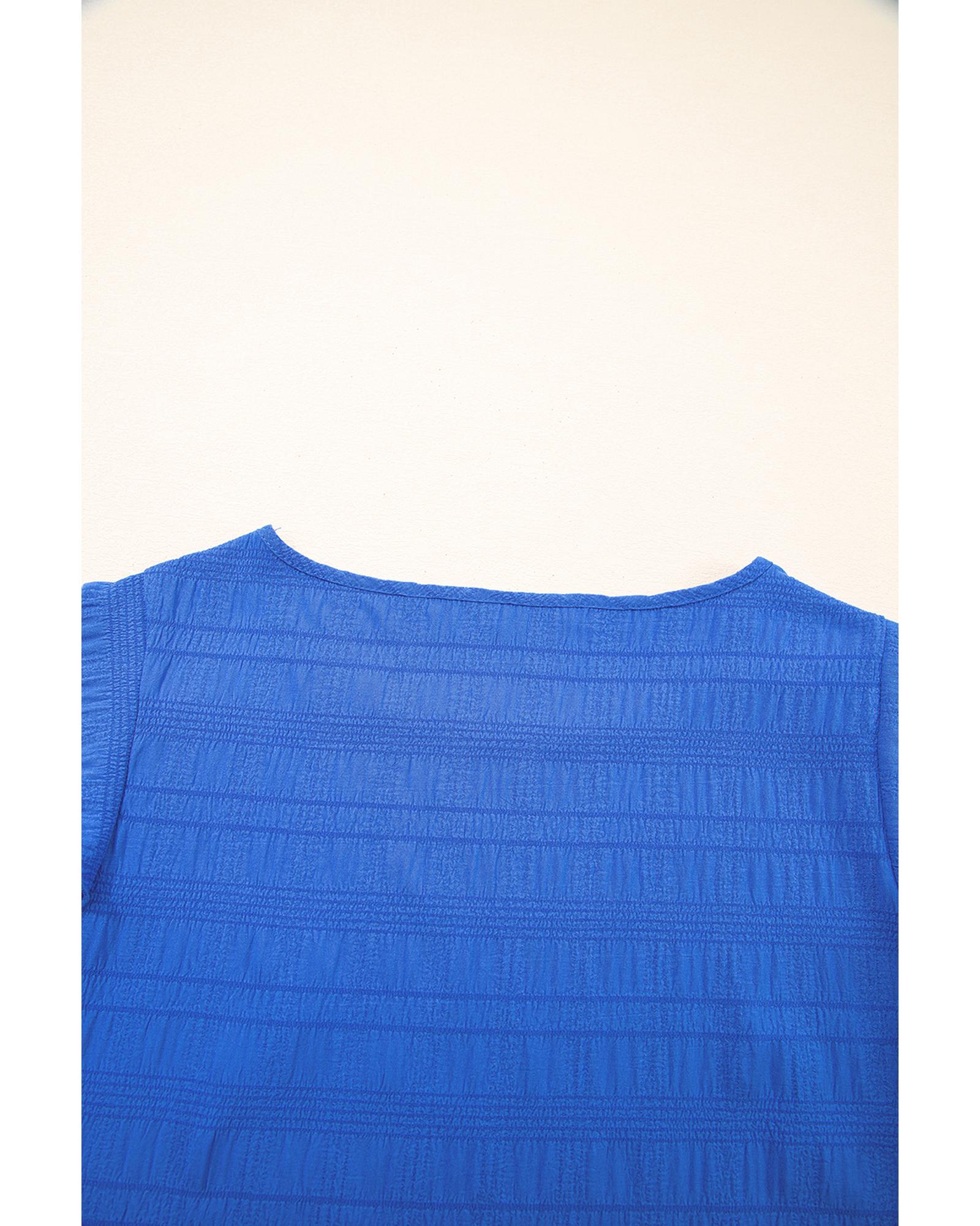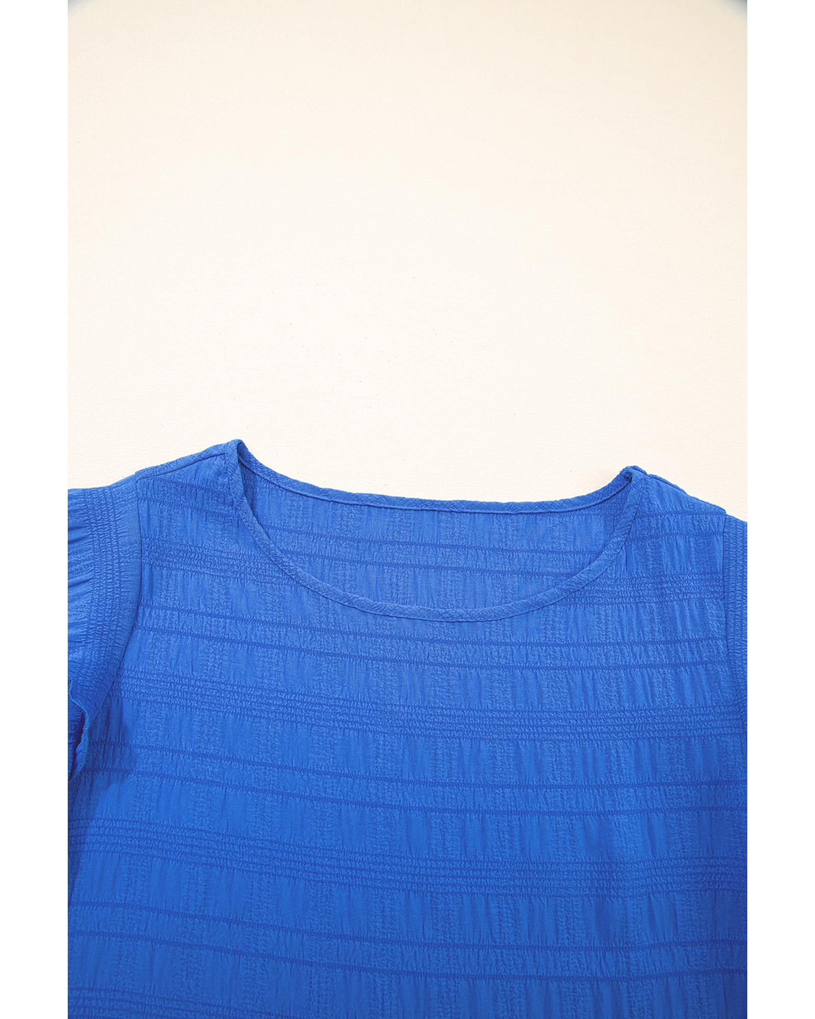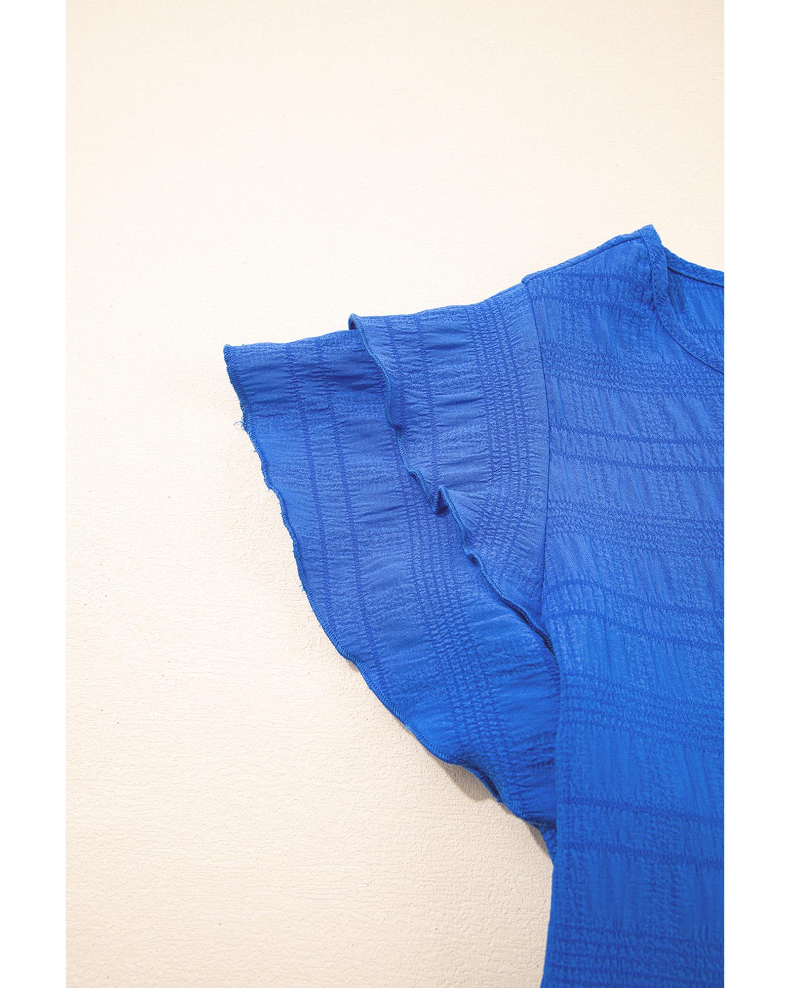 Dark Blue Textured Ruffled Sleeve Round Neck Top – XL
