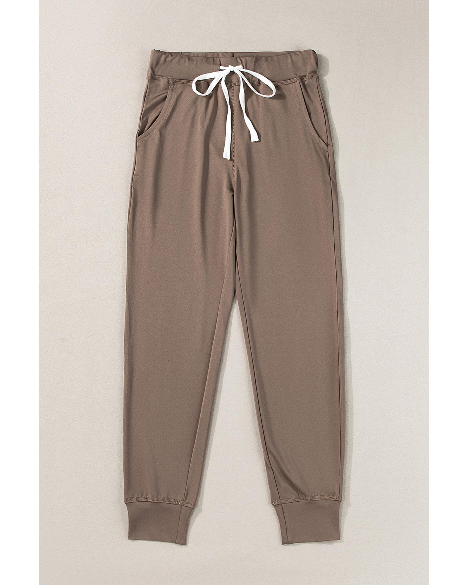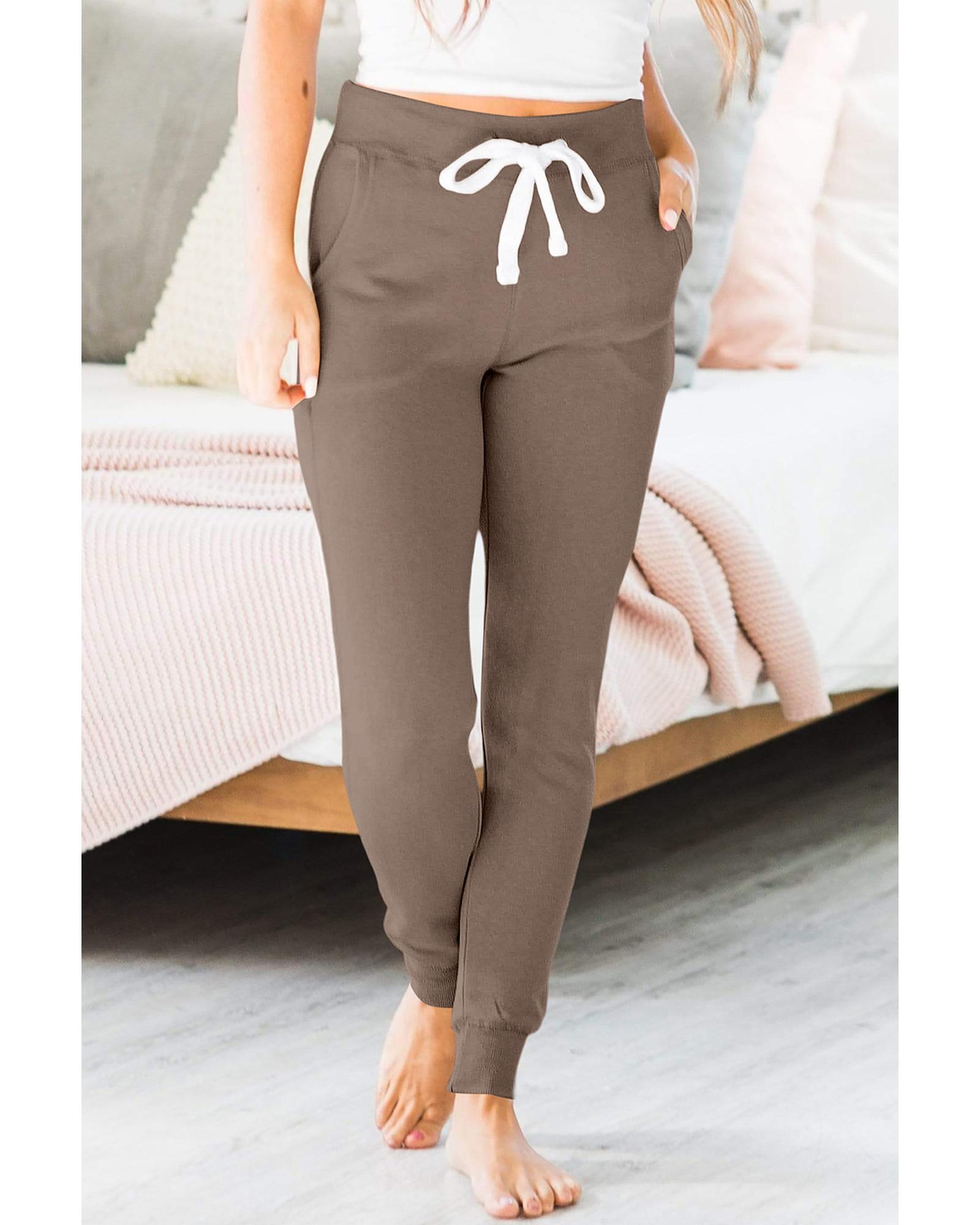 Dark Brown Drawstring Waist Pocketed Joggers – M
