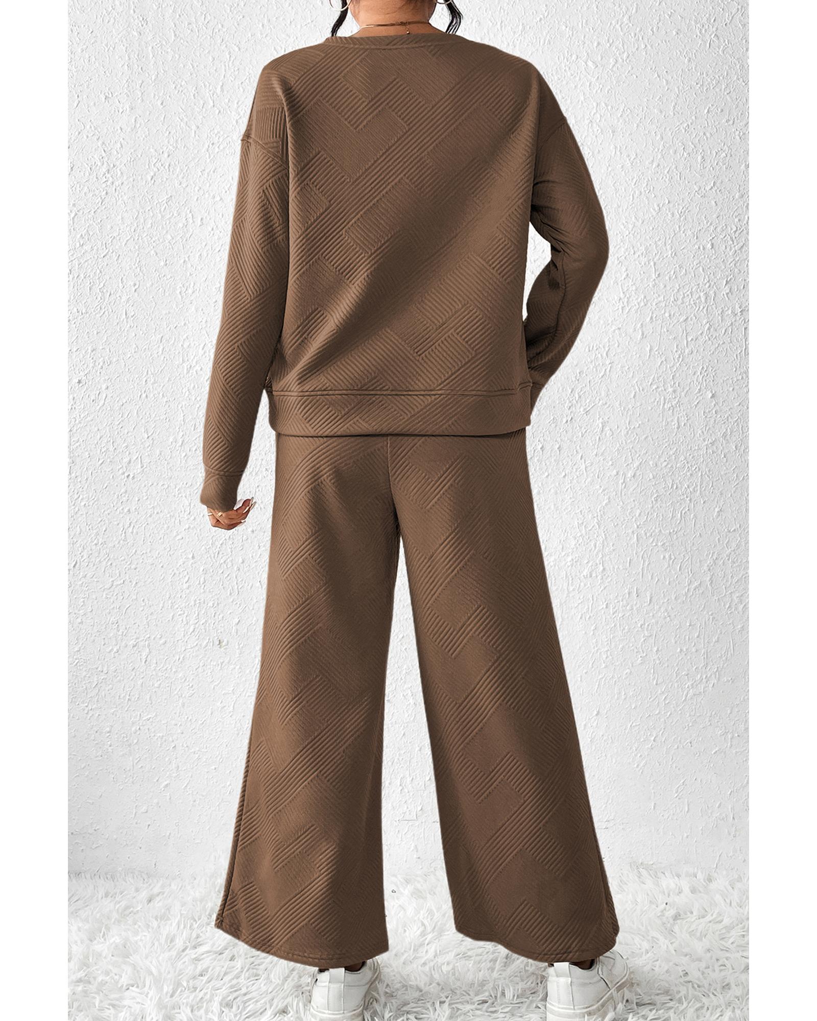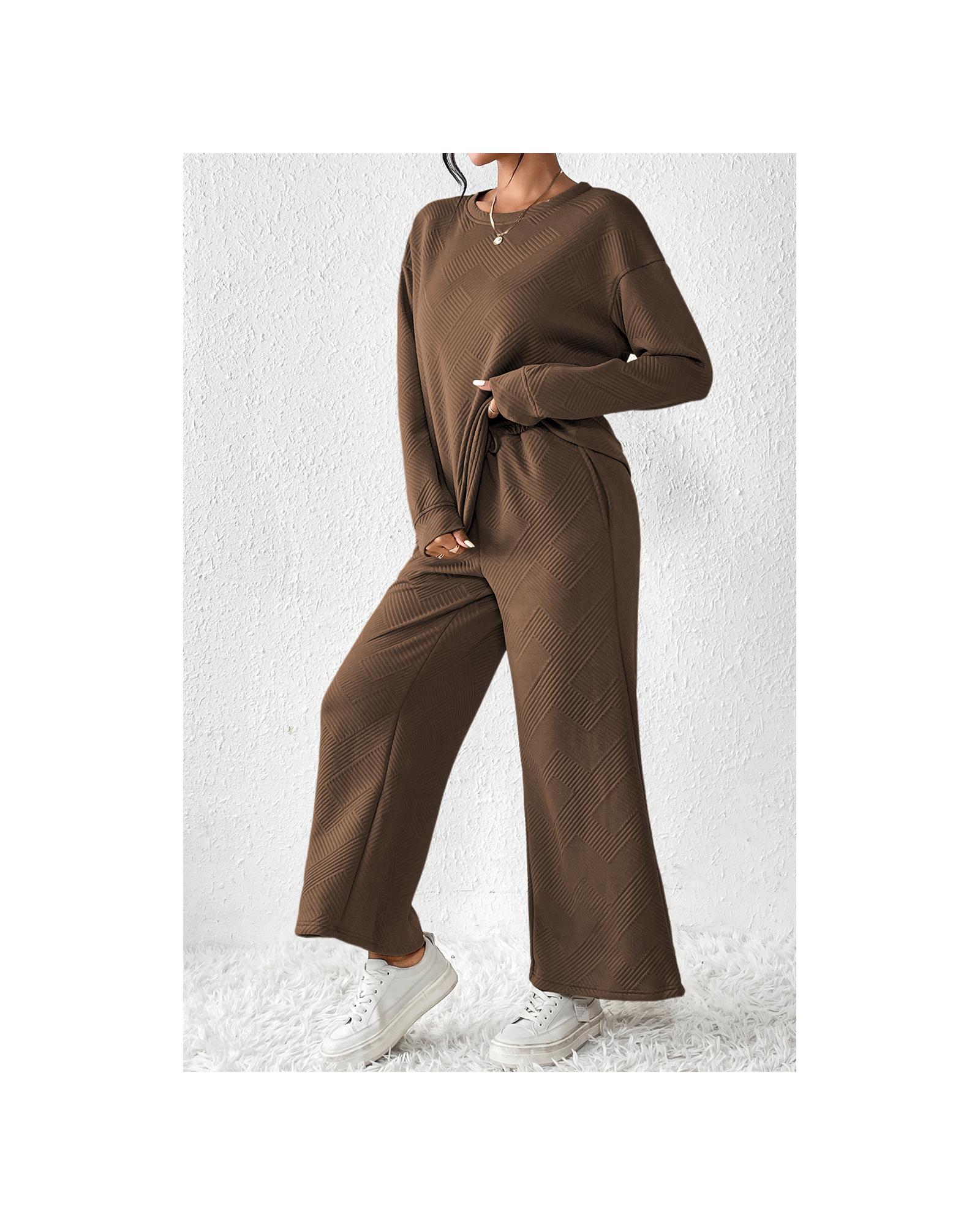 Dark Brown Ultra Loose Textured 2pcs Slouchy Outfit – S