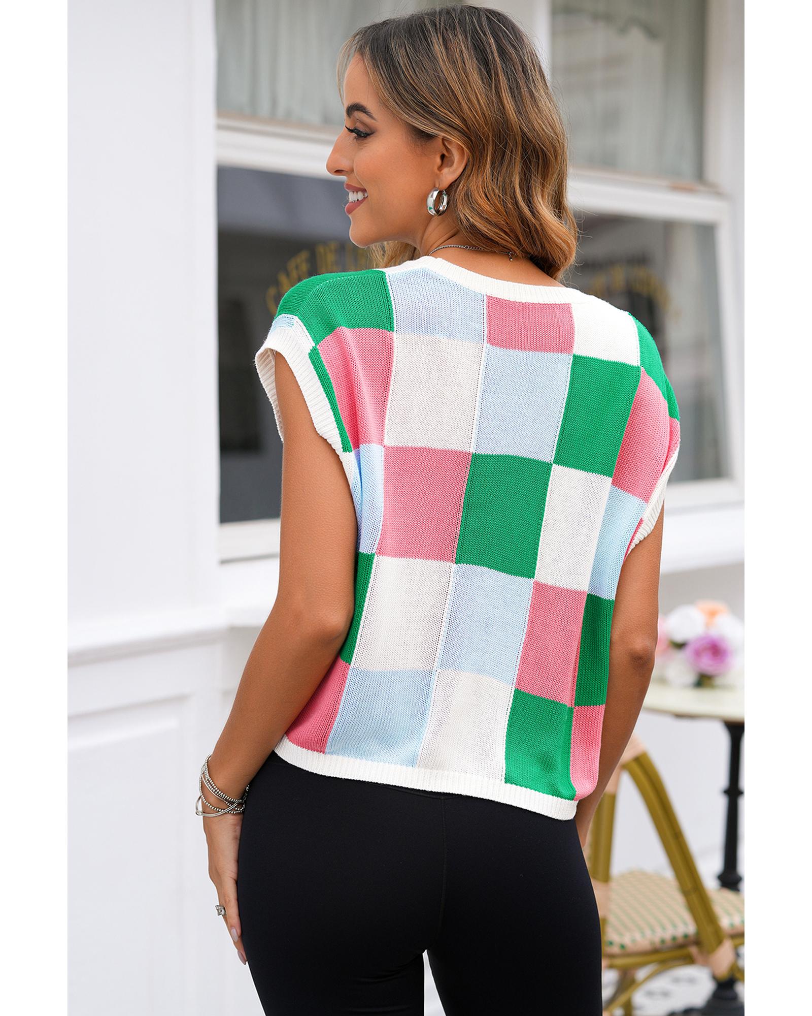Dark Green Color Block Cap Sleeve Sweater – 2XL