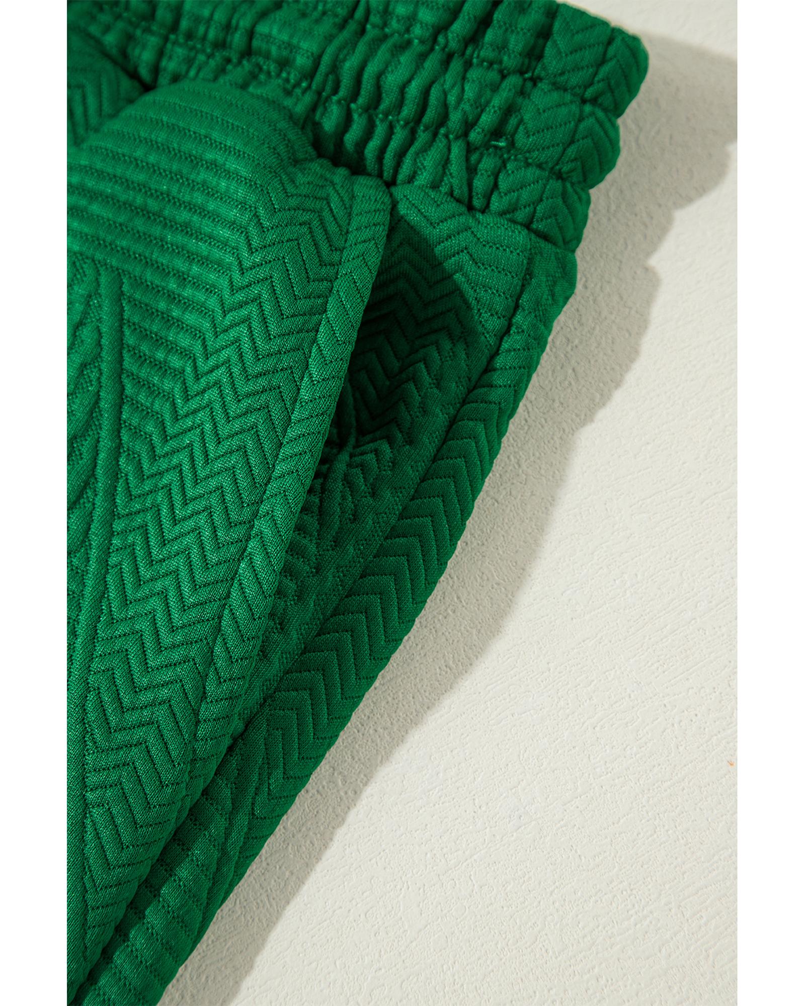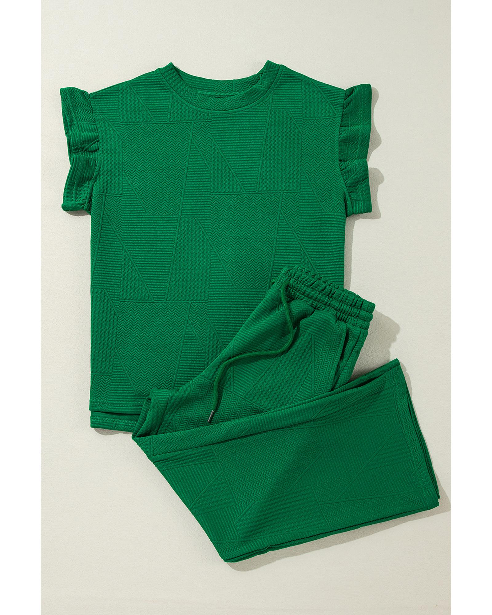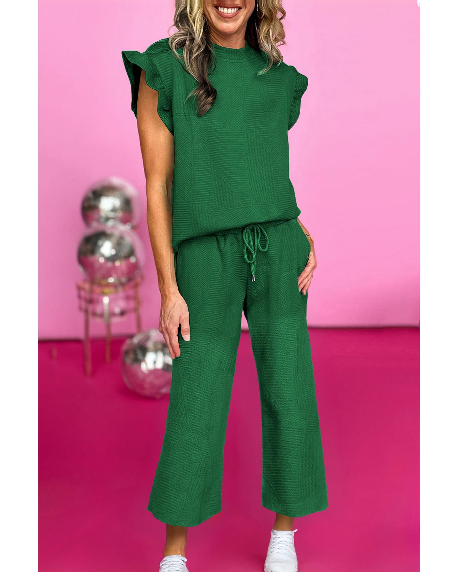 Dark Green Ruffled Sleeve Summer Top and Cropped Loose Pants Set – L