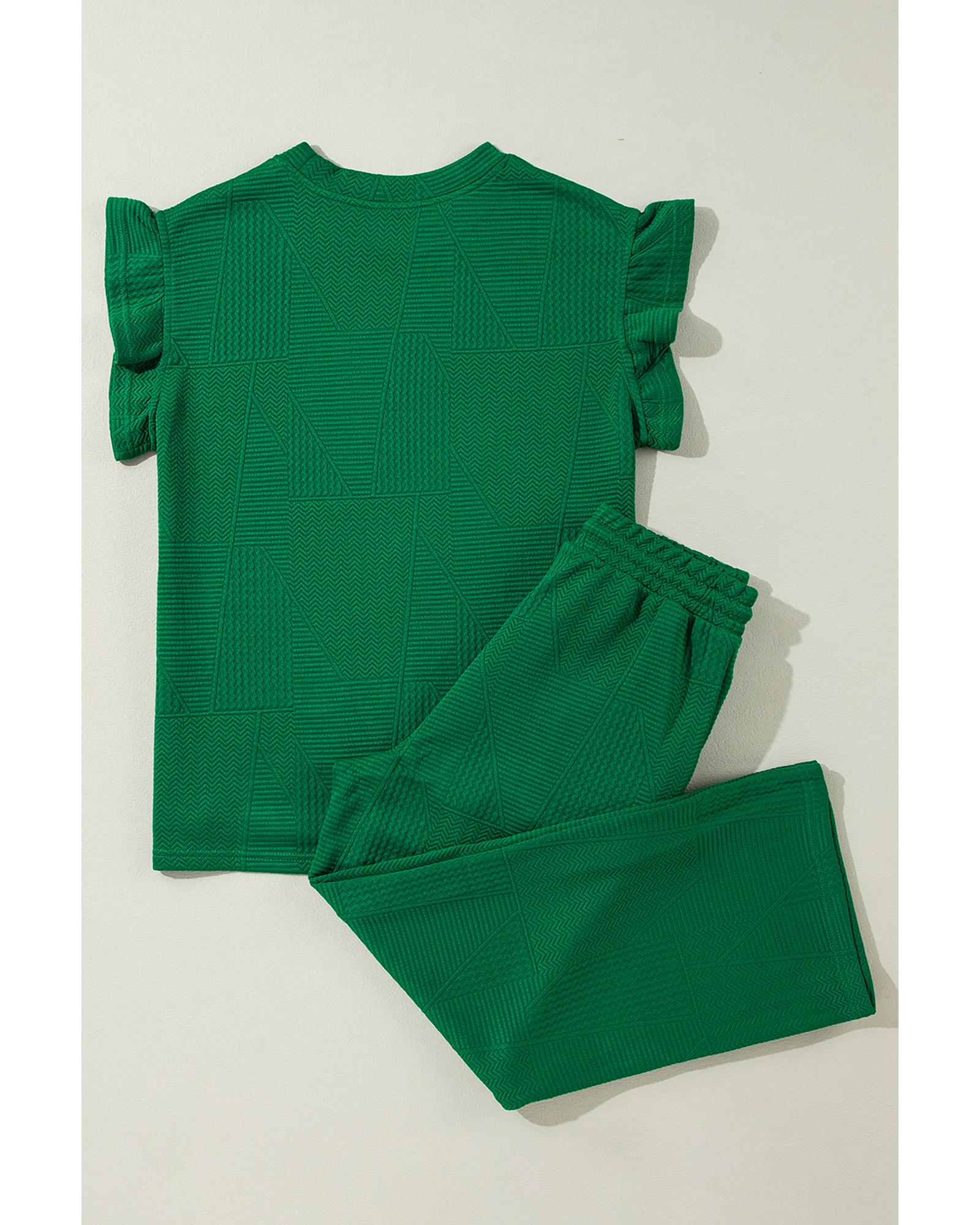 Dark Green Ruffled Sleeve Summer Top and Cropped Loose Pants Set – XL