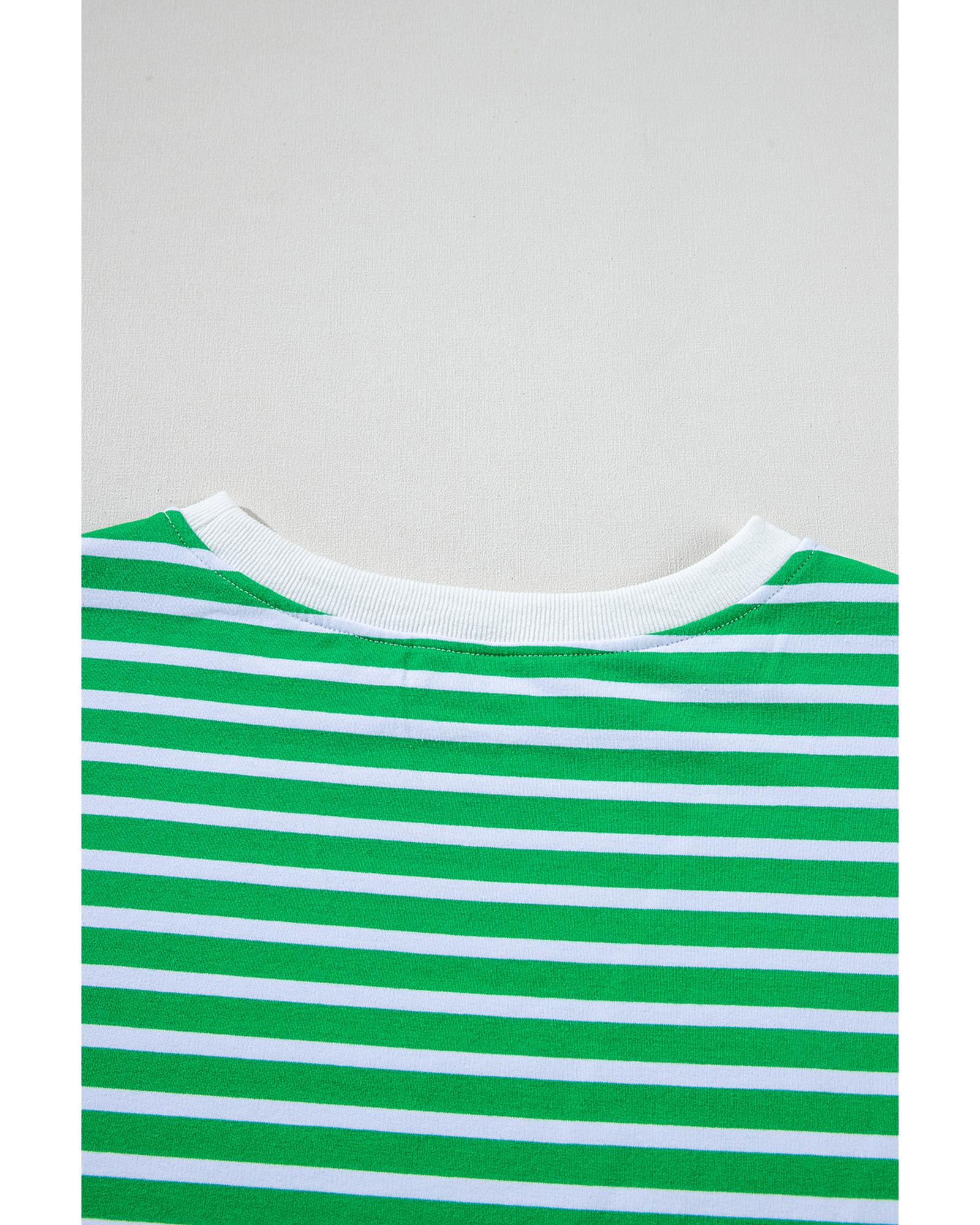 Dark Green Striped Cap Sleeve Tee and Shorts Set - L