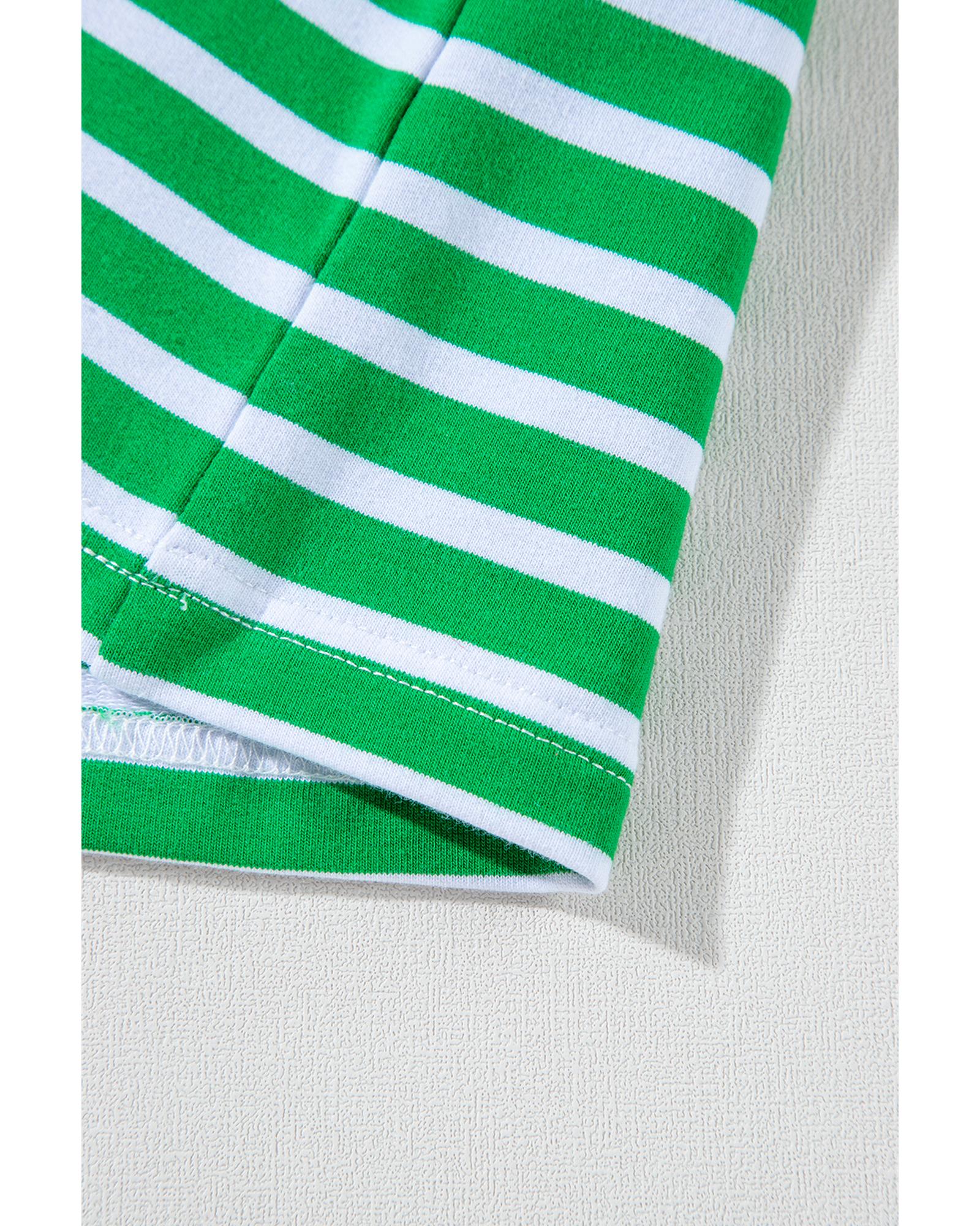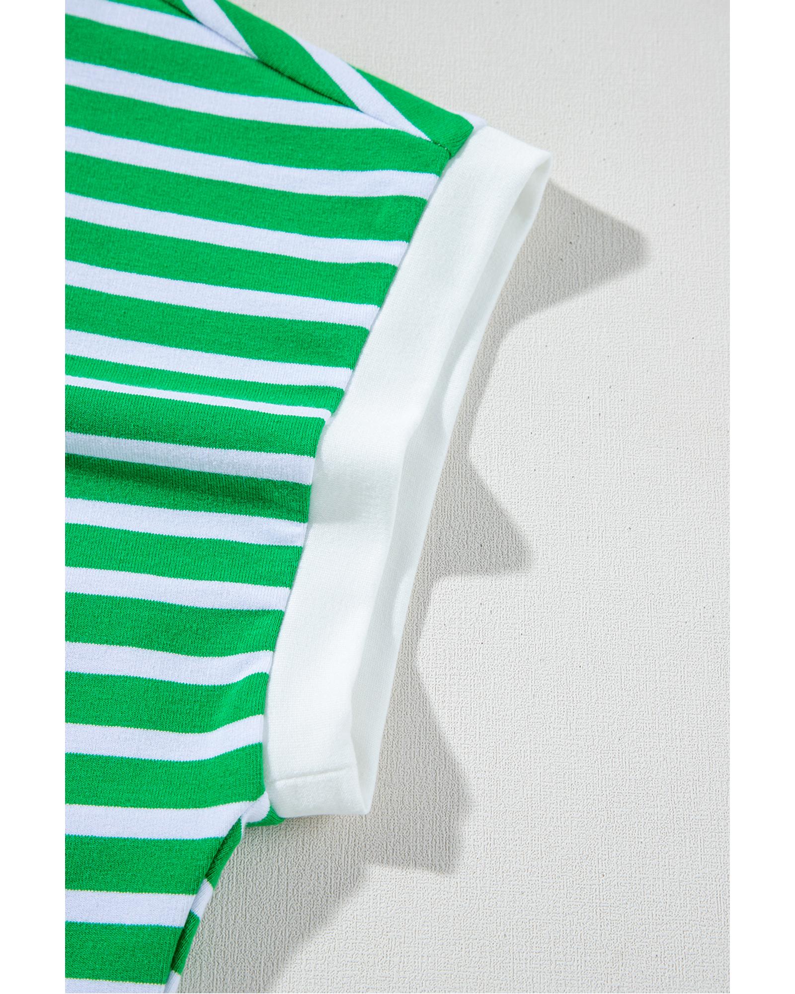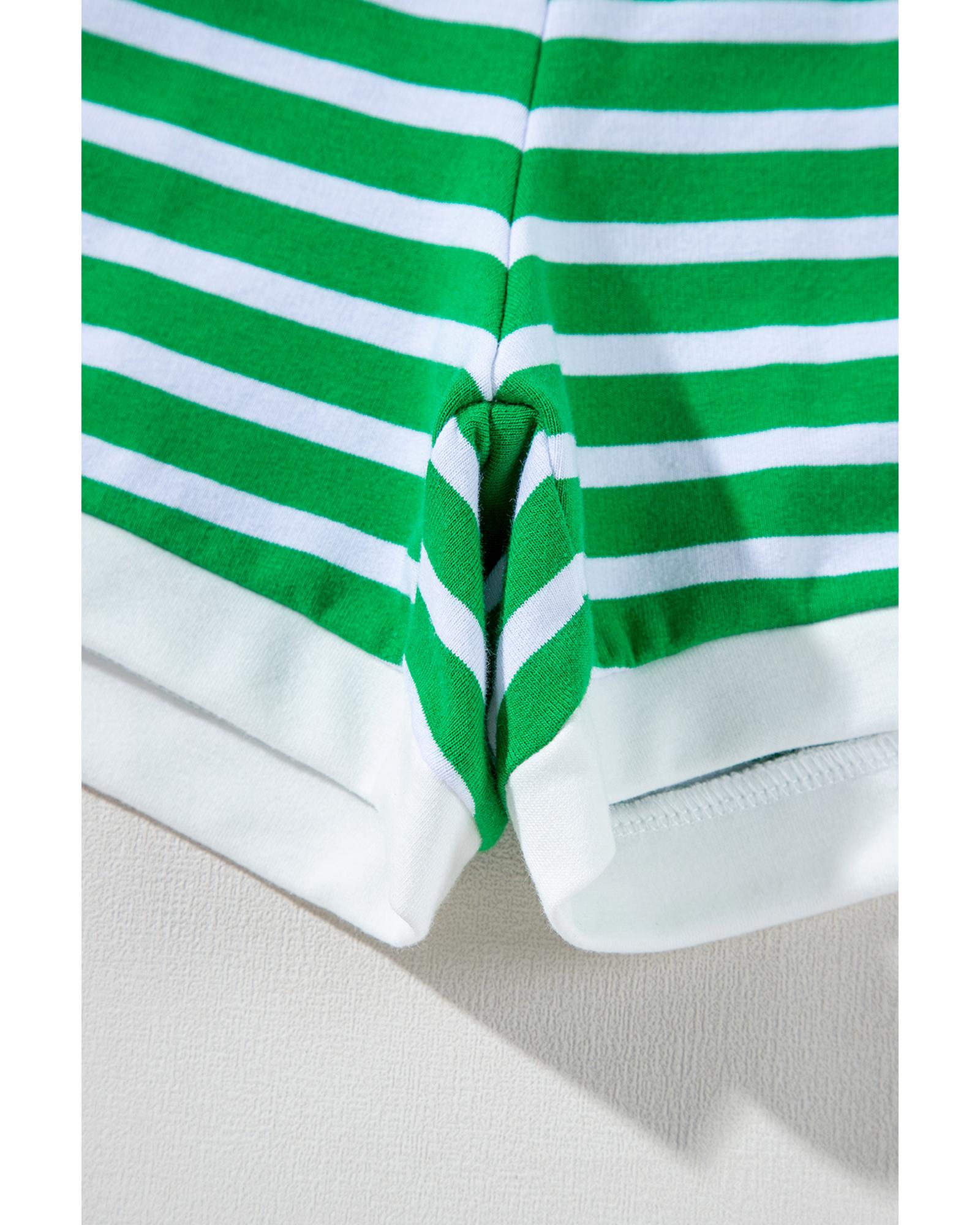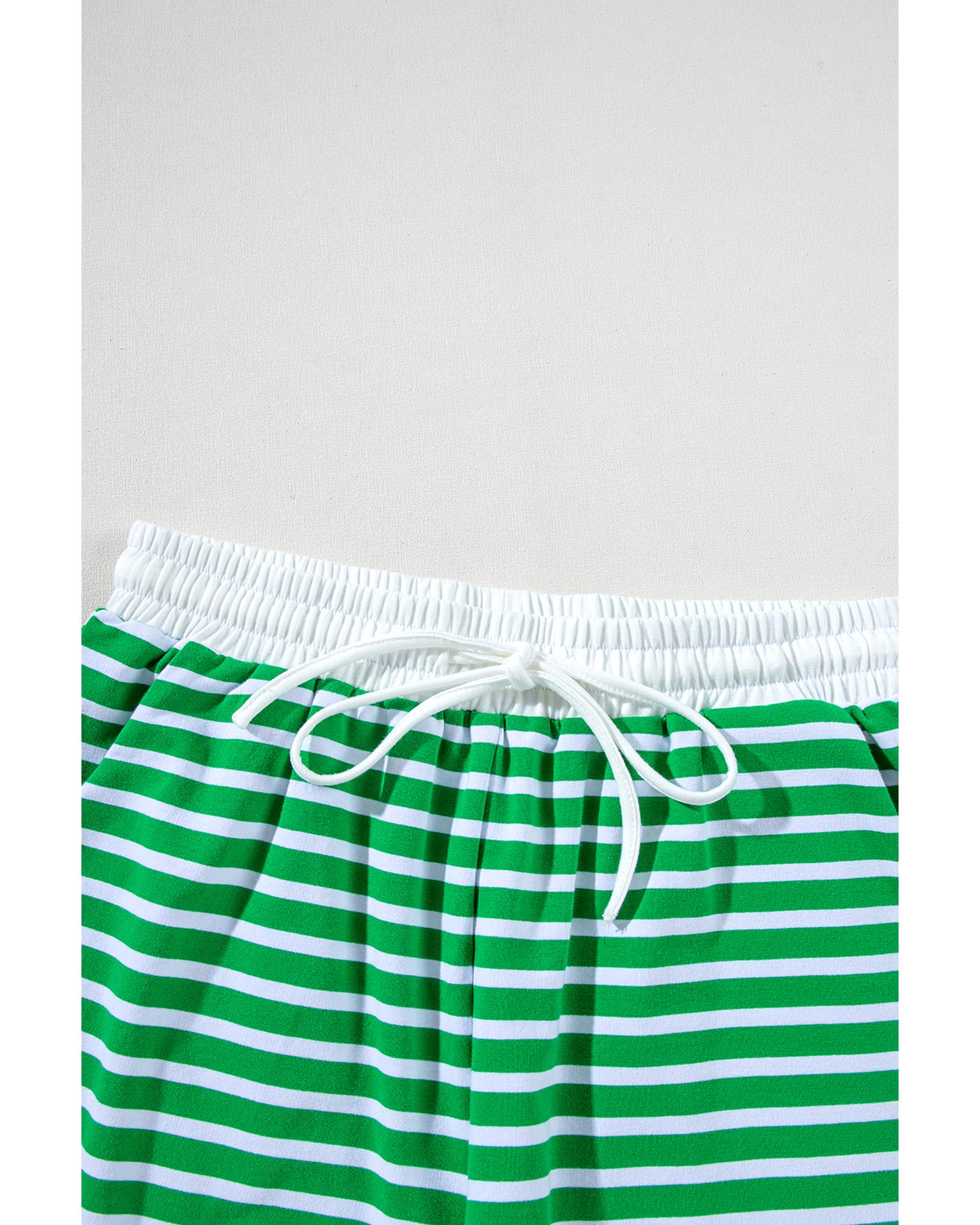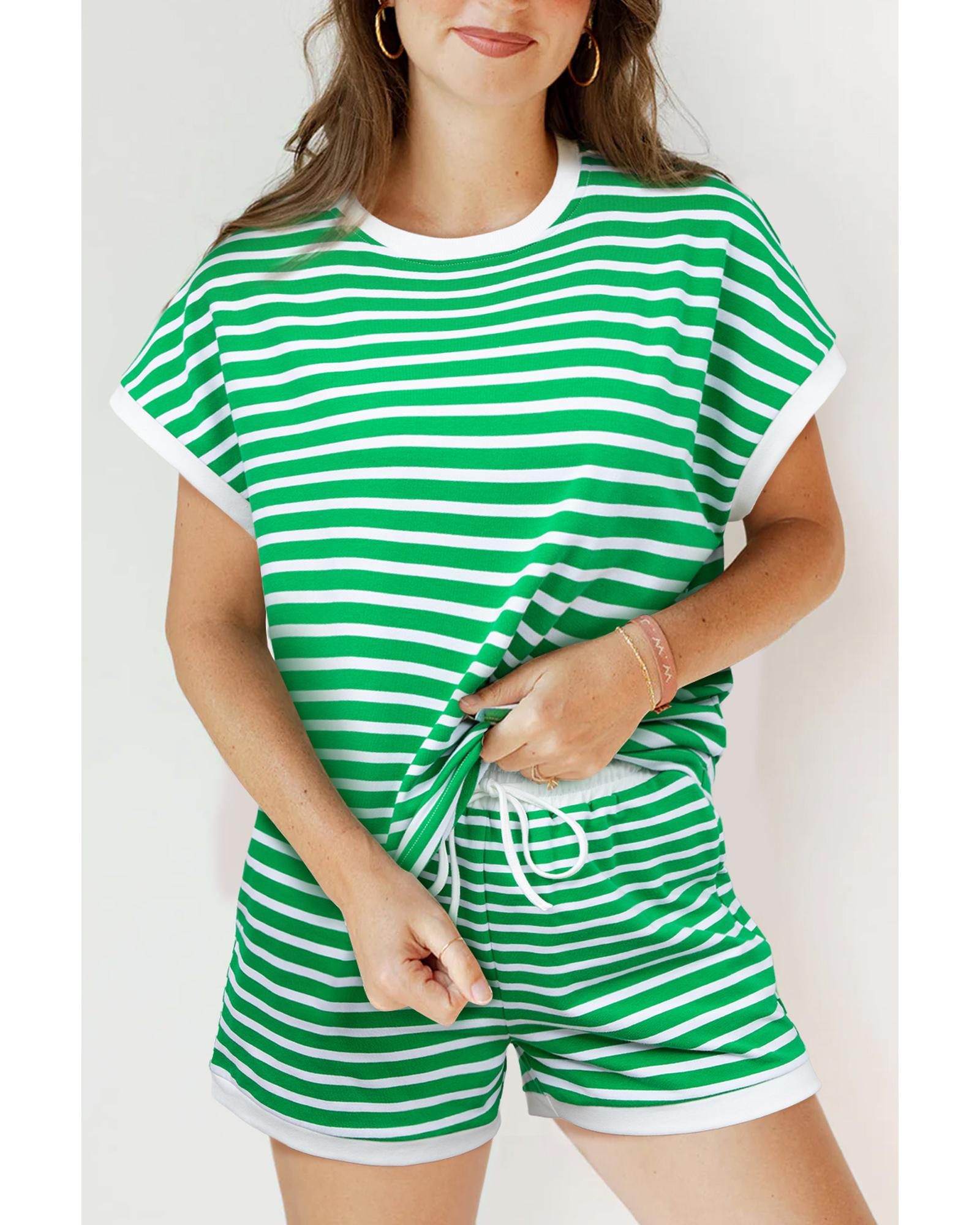 Dark Green Striped Cap Sleeve Tee and Shorts Set – S