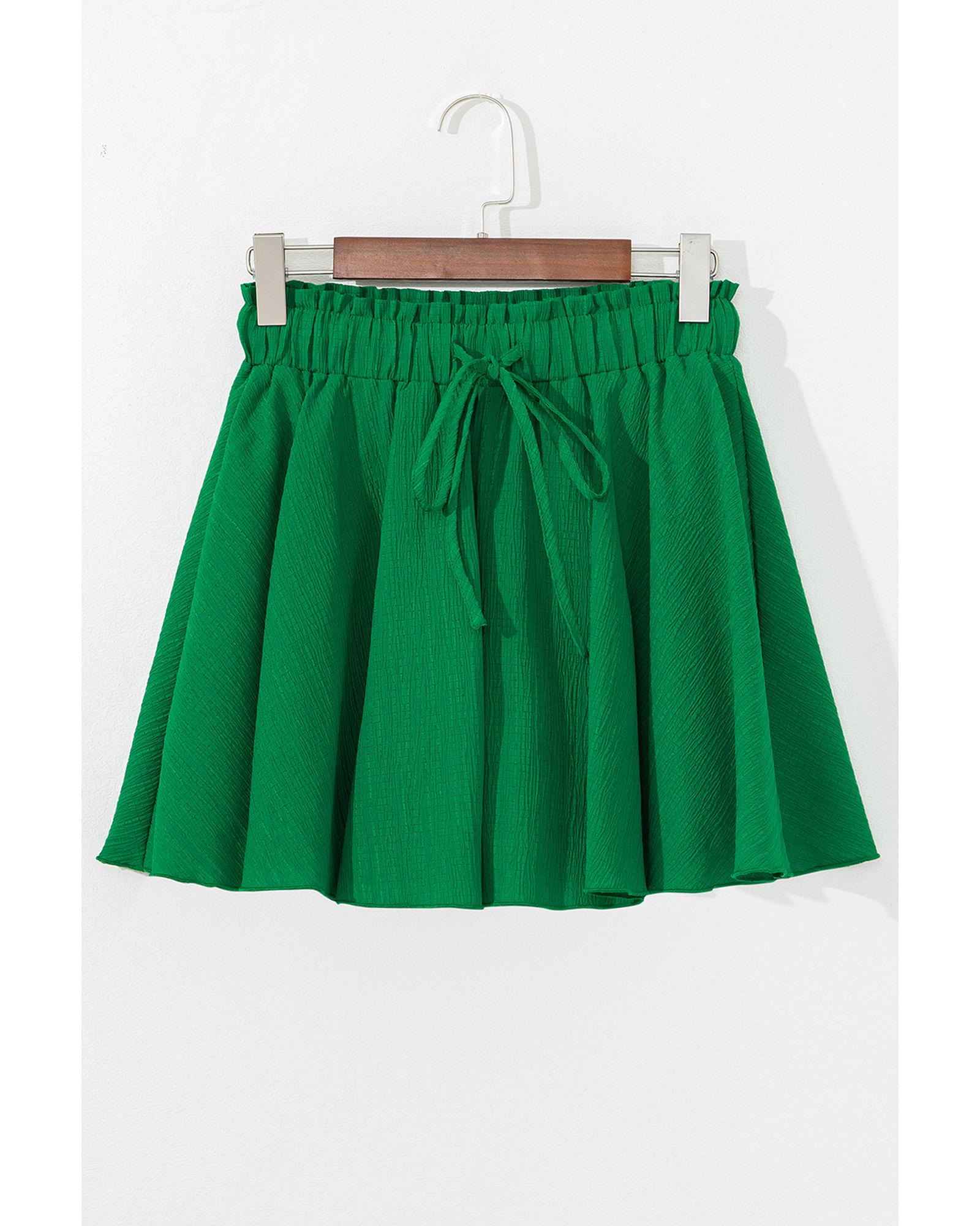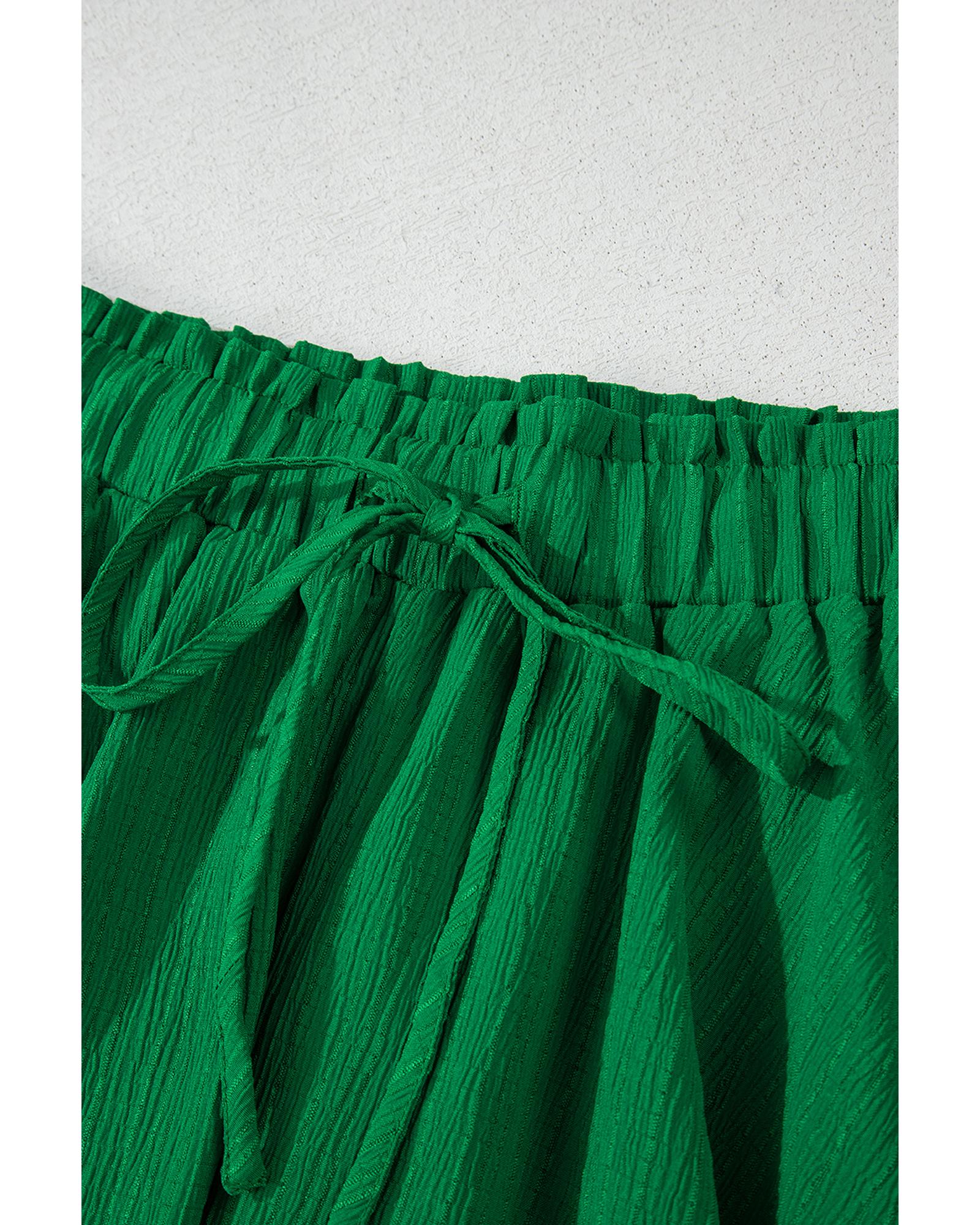 Dark Green Textured Frilled Lace-up High Waist Ruffle Wide Leg Shorts – XL